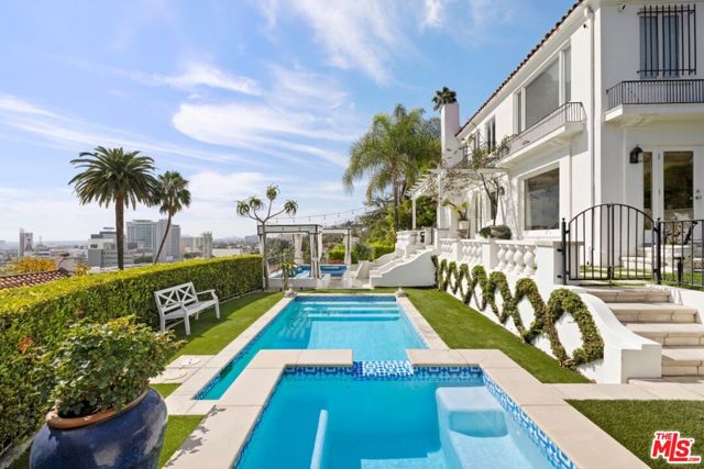 Perched on a prominent corner lot in the historic Whitley Heights enclave of the Hollywood Hills, this beautifully renovated Spanish residence blends timeless architecture with sophisticated Hollywood Regency interiors.Inside, light-filled living spaces showcase dramatic city views and effortless flow, creating an ideal setting for both everyday living and stylish entertaining. The spacious living room and chef's kitchen open seamlessly to the outdoors, where a resort-inspired saltwater pool and spa, cabana, and expansive grassy yard create a private oasis above the city.The luxurious primary suite offers a tranquil retreat complete with a spa-like bath featuring heated floors and a hydrotherapy soaking tub. Additional bedrooms provide comfort and flexibility for guests, work-from-home space, or creative studios.Perfectly situated moments from the studios, Runyon Canyon, and the vibrant shops and restaurants of the Sunset Strip and Hollywood, this exceptional home offers privacy, character, and classic Hollywood Hills living.