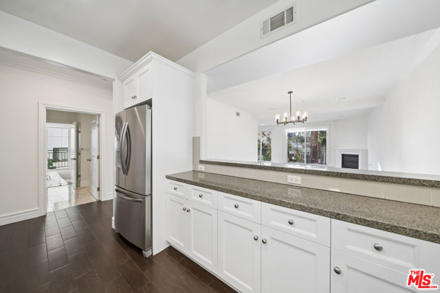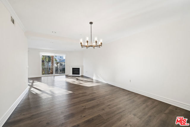 Beautiful top floor 2-bedroom plus den condo offering exceptional natural light, an open layout, and modern finishes throughout. The spacious living area includes a gas fireplace and large sliding doors leading to a private balcony with treetop views. A separate den enclosed with sliding glass doors provides an ideal flex space for an office or additional room. The gourmet kitchen features granite counters, stainless steel appliances, dual ovens, hardwood cabinets, and ample storage. The primary suite includes a walk-in closet, dual sinks, a soaking tub, and a separate standing shower. Additional highlights include in unit laundry hookups, central AC and heat, secure gated tandem parking, and controlled building access. Located near the Beverly Hills adjacent area with easy access to La Cienega Park, Pico Robertson dining, Trader Joe's, Whole Foods, Beverly Center, and major thoroughfares. Pets negotiable. Tenant pays gas and electric. Water, trash, and landscaping are included. Square footage approximate and not verified.
