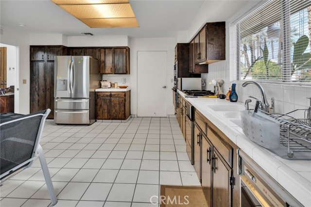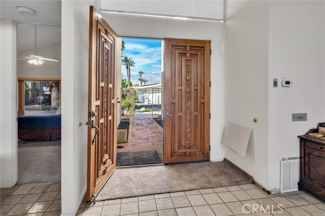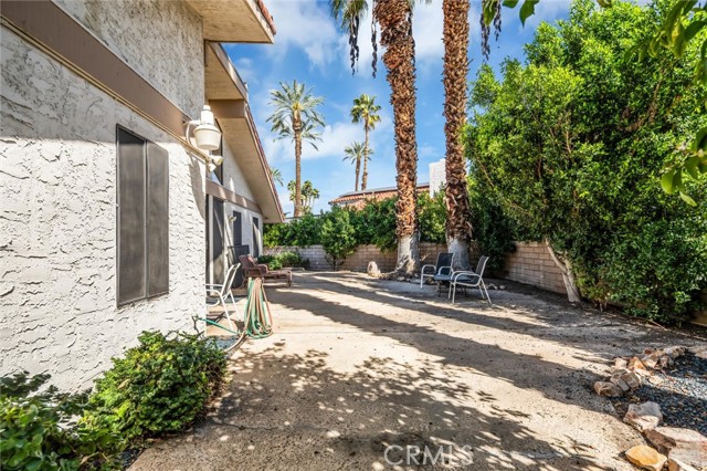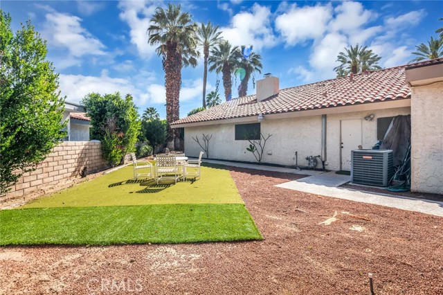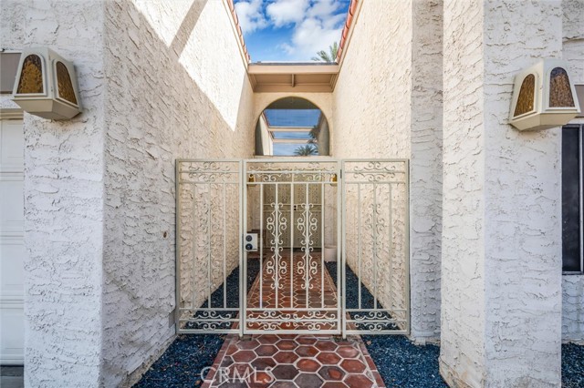 Located in the gated Presidential Estates community of Rancho Mirage, this spacious 2,700 sq ft home features an open floor plan with high ceilings, 3 bedrooms, and 3.5 bathrooms, including a large primary suite with dual bathrooms and an oversized walk-in closet. The kitchen opens to the main living areas and is complemented by a unique atrium between the kitchen and formal dining room. Additional features include a formal living room, wet bar, ample storage, a two-car garage plus a separate golf cart garage. The large walled lot offers a spacious patio and fruit trees. Community amenities include a pool, spa, and tennis courts with a low HOA, all conveniently located near shopping, dining, golf, and casinos.