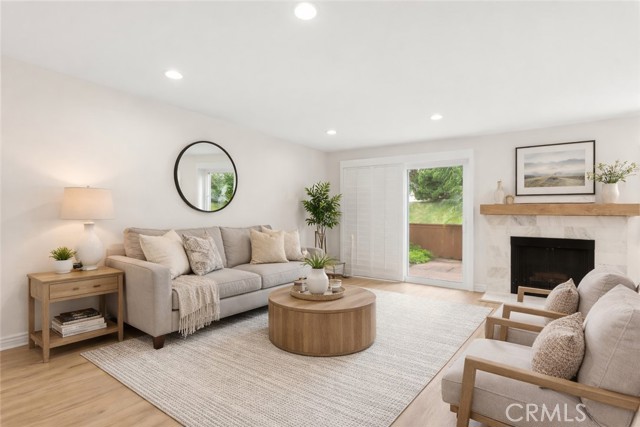 Beautifully updated and ready to go! This townhome feels like a single family home. Drive up the driveway into your two car garage. Step inside to New fresh paint, tile floors, new luxury vinyl and new carpet. Big kitchen offers and breakfast nook and a family room. Double oven, gas cooktop, new dishwasher plus a pantry. The living and dining rooms are accented by a beautiful marble fireplace that turns on the glow with the flick of a switch. A custom mantle offers a place highlight family photos. Recessed lighting brightens the downstairs along with the floor to ceiling windows in the entry. Three spacious bedroom upstairs and a large primary suite with vaulted ceilings and a walk-in closet. Classic wet-bar comes in handy for friendly gatherings. New shower and tile floors add elegance to the space. Double pane windows and plantation shutters on most windows truly make this property feel like home. Enjoy the soothing front courtyard and brick patio in the backyard that overlooks the greenbelt, pool and shade trees. Just a few steps and your at the park and a few more you put you shopping and eating at Five Points with Trader Joe's too.