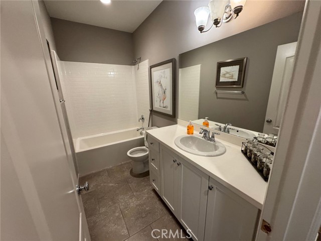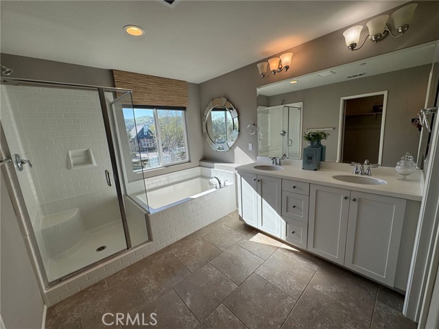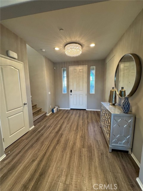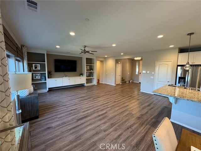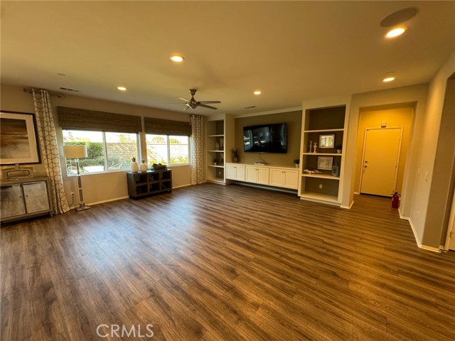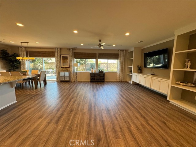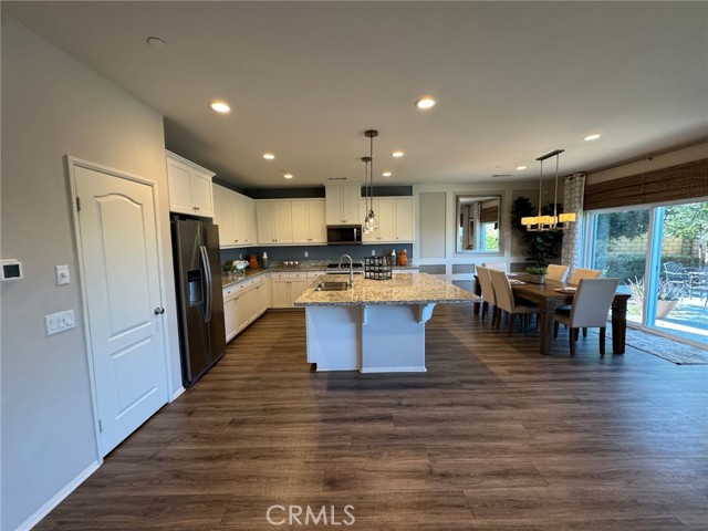 Resort-Style Living in Audie Murphy Ranch – Former Model Home Across from the Clubhouse! Welcome to this gorgeous former model home located in the highly sought-after Audie Murphy Ranch community in Menifee, perfectly positioned directly across the street from the clubhouse, pool, and resort-style amenities. This stunning 4-bedroom, 3-full-bath home with solar is loaded with custom upgrades and designer touches throughout. Step inside to a grand foyer featuring a beautiful chandelier and an elegant entry that flows seamlessly into the spacious family room with custom built-in media niches. The open floor plan continues into the formal dining area with direct access to the backyard patio, creating the perfect space for entertaining. The chef’s kitchen is both stylish and functional, offering: A huge center island with additional seating and prep space, White cabinetry, Pendant lighting, Black and stainless-steel appliances including refrigerator, Large walk-in pantry, The first floor also includes a convenient bedroom and full bathroom, ideal for guests, multi-generational living, or a home office. Upstairs you’ll find additional built-in storage and a large window that fills the space with natural light, along with an oversized loft featuring built-ins that can easily serve as a media room, office, playroom, or flexible living space. The primary suite feels like a private spa retreat, featuring designer accents and shelving, along with a luxurious ensuite bathroom with dual-sink vanity, separate soaking tub, walk-in shower, privacy door, and a huge walk-in closet. The secondary bedrooms are beautifully appointed with custom paint and lighting, and the guest bathroom is conveniently located nearby. Additional features include: Large laundry room with cabinets and shelving, Modern ceiling fans, Recessed lighting, Designer paint colors, Brand new flooring installed after photos were taken, 3-car garage with epoxy flooring. Step outside to a well-manicured backyard with mature trees, providing a peaceful setting to relax or entertain. Residents of Audie Murphy Ranch enjoy incredible resort-style amenities, including: Clubhouse, Multiple pools & spas, Fitness center, Sports parks, Hiking and biking trails, Playgrounds and community events. All just steps from your front door. This beautiful former model home with designer upgrades and a prime location truly offers the best of resort-style living in Menifee. A must see!