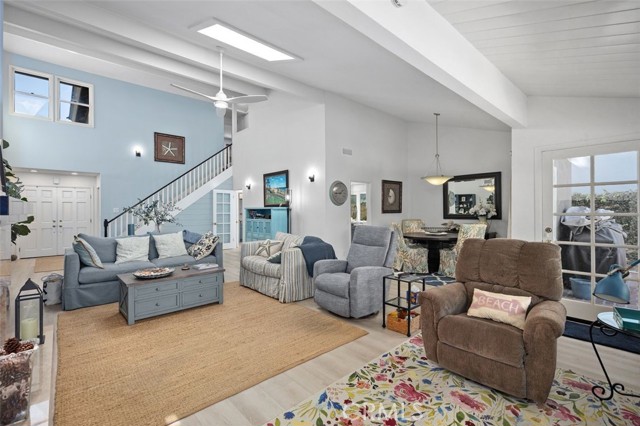 An exceptional expanded residence ideally positioned on coveted Trinidad Island in Huntington Beach, this approximately 2,664-square-foot home offers an elegant blend of scale, comfort, and timeless design. Featuring four bedrooms, a versatile bonus room or den (ideal as a fifth bedroom), the layout is both expansive and thoughtfully refined. The central living area serves as the heart of the home, where skylights and windows flood the interior with natural light and vaulted ceilings create an atmosphere that feels open, airy, and inviting. Designed for both grand entertaining and intimate gatherings, the space flows effortlessly into the home’s dining area. On the main level, a secondary bedroom provides flexibility for guests or multigenerational living while the primary suite is privately situated in its own wing—offering a true retreat experience. This tranquil sanctuary features a spacious walk-in closet and a luxurious spa like en-suite bath designed for relaxation and indulgence. The kitchen is beautifully finished with quartz countertops, upgraded appliances, and custom cabinets perfectly suited for the culinary enthusiast and entertainer alike. A graceful staircase leads to the upper level, where there are two additional bedrooms, a full bath and a storage room. Additional highlights include a well-equipped laundry room with sink, a newer 50-gallon water heater and a meticulously maintained garage with a new epoxy floor and WiFi-enabled door opener. You will be just steps away from Trinidad Island’s beach where you can launch your kayak, stand up paddle or just put your toes in the sand.. A rare opportunity to experience elevated island living in one of Huntington Beach’s most desirable enclaves.