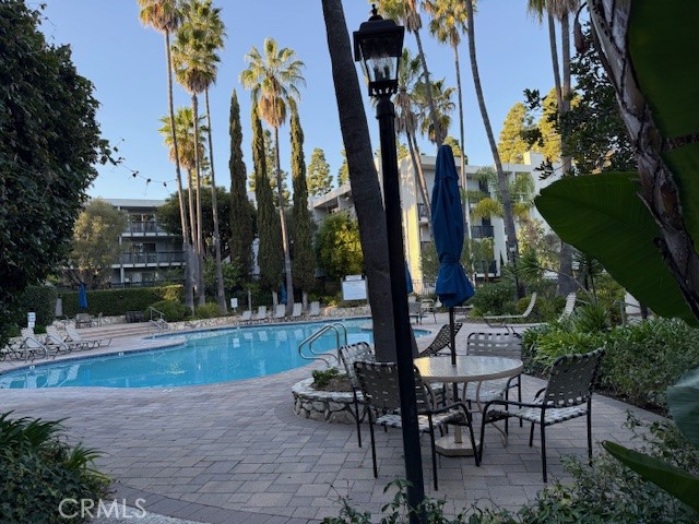 Top-floor 1-bedroom, 1-bath condo located on the 3rd floor with elevator access in a quiet and well maintained community. This unit offers peaceful and private setting. Functional galley kitchen, open dining and living area, private balcony, and walk-in closet. Full bathroom with handheld showehead. Electric stove, refrigerator, and microwave included. One assigned garage parking space. Community amenities include pool, spa, tennis courts, table tennis, and billiards room. Beautiful maintained grounds with lush greenery.