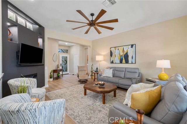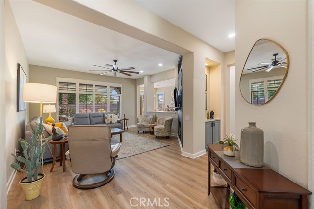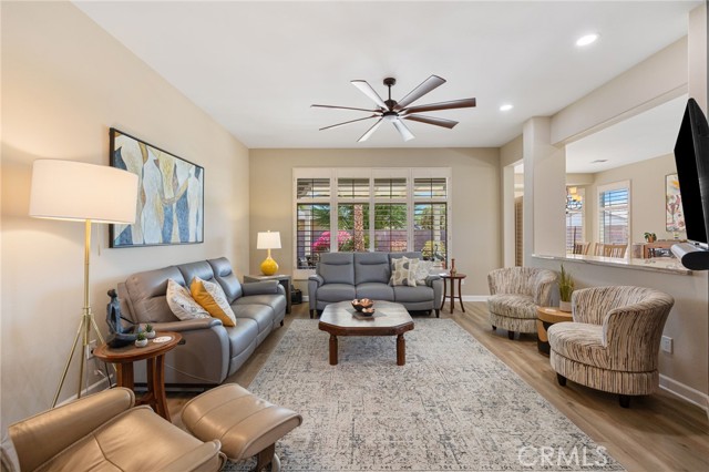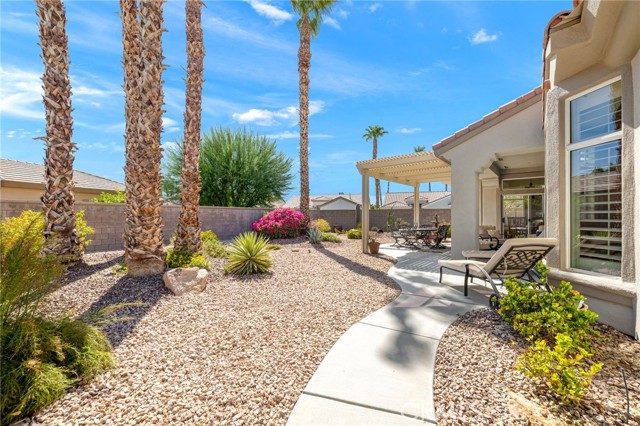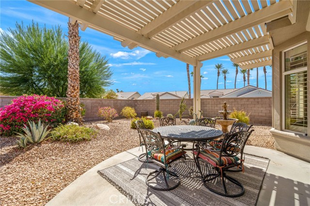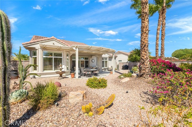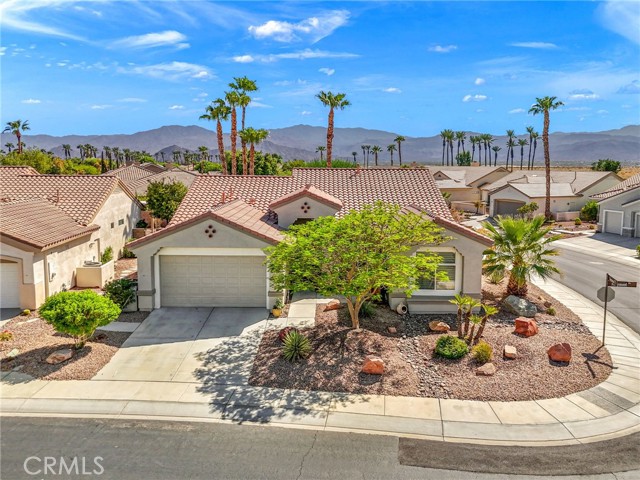 This property is a long Term Rental - Sun City Palm Desert - Tangier. Sitting on a spacious corner lot, in the newer northern section of Sun City, this move-in ready home has a spacious south-facing rear yard with peekaboo mountain views, an extended patio with alumawood patio cover, surrounded by lush desert landscaping including towering palm trees. There is curb appeal with lush landscaping, a front courtyard and leaded glass front door and surrounding windows. Inside, tile flooring, 10ft ceilings, plantation shutters and completely upgraded throughout. The great room has large windows overlooking the rear yard. Off the main hallway, French doors open to a spacious den/office that could also be used as a 3rd bedroom. The kitchen has Corian counters, a breakfast bar and stainless appliances. Raised-panel maple cabinetry is in the kitchen, laundry bathrooms and linen. The primary suite has a bay window and huge walk-in closet. Primary suite bathroom has dual sinks, a stall shower with glass enclosure; cultured marble surfaces. A shower/tub is in the guest bathroom with rain-glass doors. The extended guest bedroom has French doors to courtyard. The laundry room has utility sink and cabinetry. The 2-car garage has a nook for golf cart parking, an epoxy floor and abundant built-in storage plus workbench. The home is equipped with a Kinetics soft water system and central vacuum. AC new 2010. Water heater new 2018. Garbage disposal 2022. Schedule a tour of one of the town's premier properties. Please send me your business card and availability to tour it!!