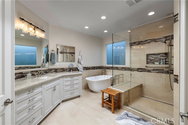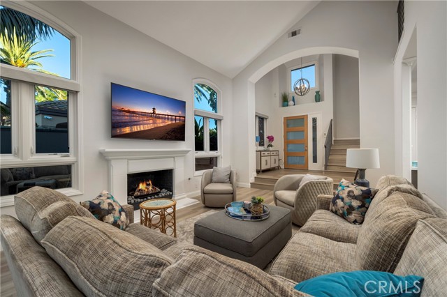 Located in the prestigious 24-hour guard-gated community of The Estates at SeaCliff in Huntington Beach, this beautiful newly remodeled home offers luxury coastal living just moments from the beach and across from the scenic Huntington Beach Wetlands. Enter through a charming courtyard with magnolia trees and fountains into a bright living room with soaring ceilings and French doors to the patio. The open floor plan features a bar area and a family room open to the brand-new custom kitchen with quartz countertops, stainless steel appliances, a large island, and folding doors opening to the private backyard. The main level includes a large dinning room, an office (easily converted to a 5th bedroom), a bath with shower, and a three-car garage. Upstairs are four bedrooms, including a spacious primary suite with wetlands and peek-a-boo ocean views, a sitting area, balcony, dual vanities, soaking tub, walk-in shower, and walk-in closet. Two bedrooms share a Jack-and-Jill bath, while another has its own ensuite bath and balcony. Additional features include dual HVAC, upstairs laundry, three gas fireplaces, newer doors and windows and a private backyard with spa, fire feature, and lush landscaping. Conveniently located near SeaCliff Elementary School.