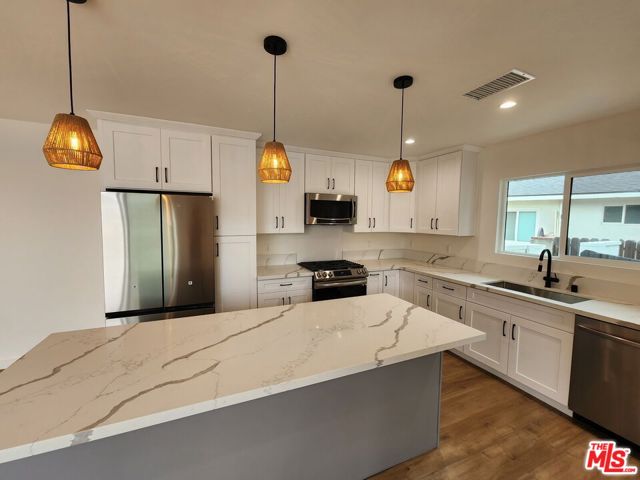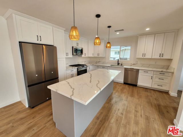 Totally remodeled 4 br and 3 ba single-family house providing a comfortable and private living space. Nestled in a peaceful neighborhood, this home offers aserene environment that promotes relaxation and tranquility. The open-plan design creates a seamless flow. The kitchen is a standout feature, boasting brand-new stainlesssteel appliances and generous counter space, making it a practical and enjoyable space for cooking and meal preparation. The master bedroom boasts a spacious walk-incloset, offering plenty of storage for your wardrobe and personal items. The master bathroom exudes elegance, providing a tranquil retreat where you can unwind andrejuvenate. Step outside into the large backyard, providing ample room for outdoor activities and possibilities for creating your own outdoor nest. You'll appreciate theconvenience of a closed garage, ensuring secure parking and protection from the elements. Additionally, an outdoor storage room offers additional space to keep yourbelongings organized. This remodeled single-family house is a wonderful blend of style and functionality, offering a comfortable and inviting living space for you and yourfamily. Don't miss the opportunity to make this house your new home.
