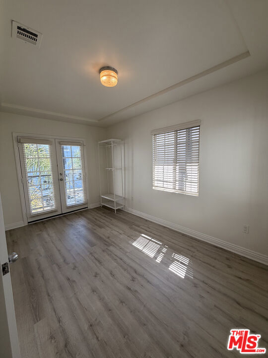 Beautiful and bright contemporary upper unit in a charming upgraded Spanish-style duplex, located in a highly desirable neighborhood. This spacious residence features three generous bedrooms with multiple closets and two full bathrooms. The unit offers and elegant living room, formal dining area, and a stylish wet bar, perfect for entertaining guests. The kitchen includes a cozy breakfast area, granite countertops, custom cabinetry, and stainless-steel appliances, combining functionality with a modern design. Abundant natural light fills the unit through multiple windows in every room, creating a warm and inviting atmosphere. Enjoy a private balcony and the convenience of an in-unit washer and dryer. Large back yard with a variety of mature fruit trees. Ideally located within walking distance to the prestigious Cedars Sinai Medical Center, The Beverly center, Traders Joe and the SLS Hotel, with excellent dining nearby and a short drive to Rodeo Drive, The Grove, and Melrose Avenue. Located in the highly sought after Beverly Hills School District.