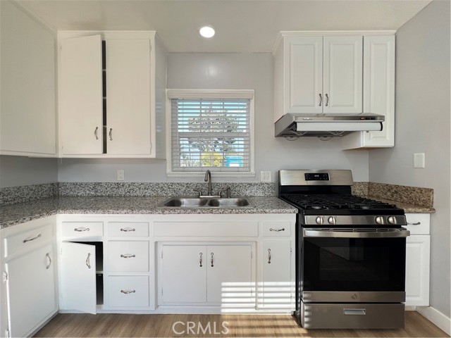 Find this cozy two bedroom two bath house for rent in El Monte! Property has recently been updated, recess lights throughout with newer flooring. Bright and airy unit with large front porch and front yard! A two car detached garage included in the rent with washer and dryer hook ups in the garage!