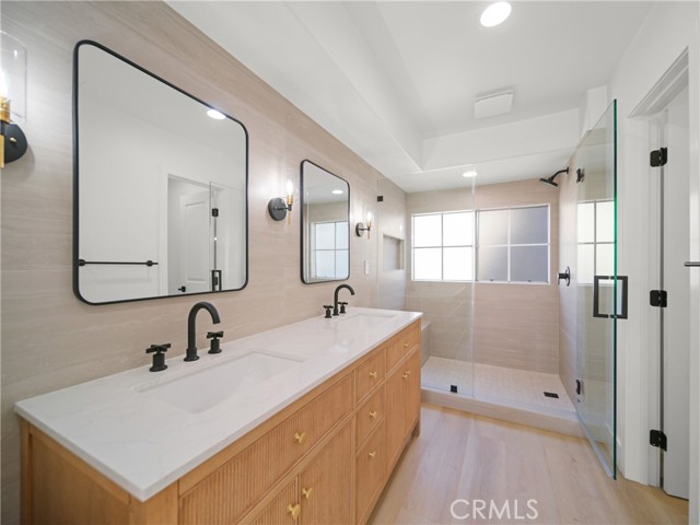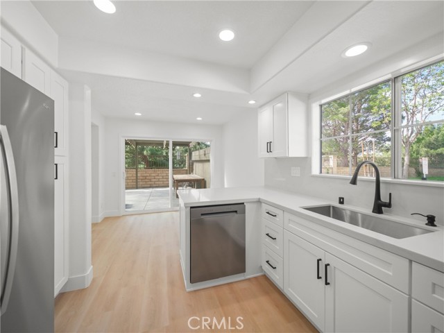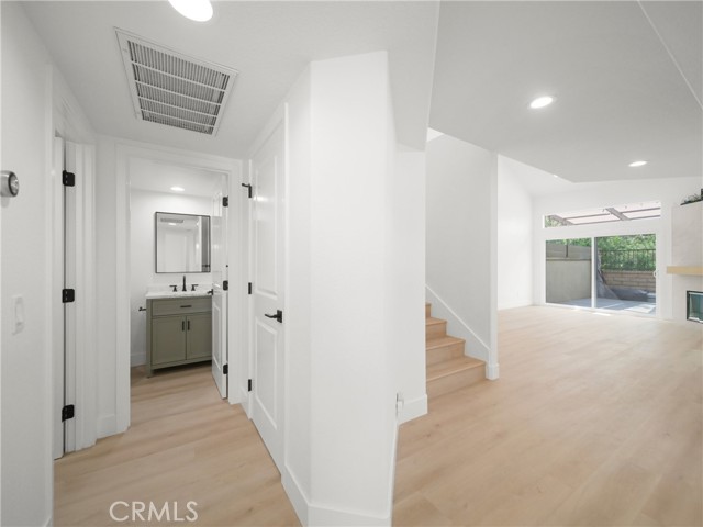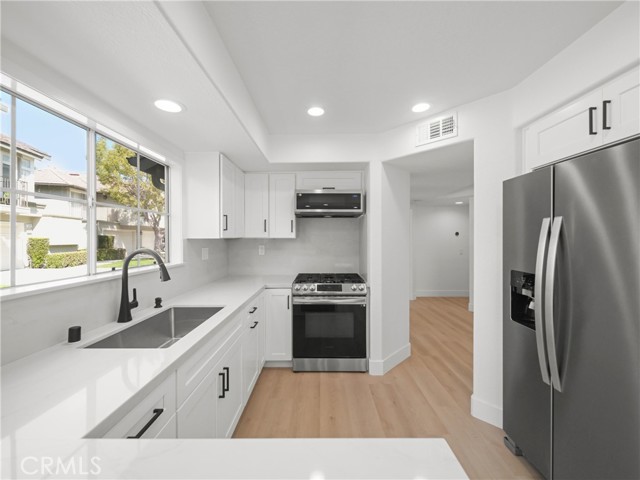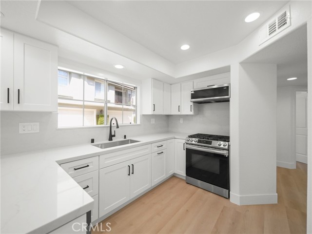 Beautifully remodeled townhome on a corner lot in the highly sought-after Laurelwood community of Anaheim Hills. This newly completely remodeled townhouse is a light and bright home features an open floorpan with a beautifully upgraded kitchen complete with stainless steel appliances, flowing seamlessly into a separate dining room and inviting living room with fireplace. Large Anderson sliding doors open to a spacious private slate patio—perfect for entertaining or relaxing while enjoying peaceful nature views and gated access to nearby walking trails. Upstairs, a double-door entry leads to the primary bedroom retreat with tranquil views and a tastefully remodeled en-suite bathroom featuring dual sinks, upgraded fixtures, and a spacious shower. The secondary bedroom also offers its own private en-suite bathroom, providing comfort and privacy for guests or family. Unique to this home is a two-car attached garage with a roll-up door along with a large private driveway offering additional parking. Additional highlights include laminate wood flooring, a dedicated laundry room, a custom staircase with upgraded lighting, vaulted ceilings, recessed lighting, and new ceiling fans throughout. Residents of the Laurelwood community enjoy access to a large pool and relaxing jacuzzi. Ideally located near top-rated schools including Canyon Rim Elementary, El Rancho Charter Junior High, and Canyon High School, and just minutes from parks, scenic trails, shopping, dining, and convenient freeway access.