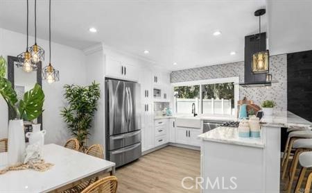 Single-story, fully remodeled home in the heart of Mission Viejo. This light-filled home features an open floor plan with new cabinets, updated flooring, and remodeled bathrooms with custom tile. The property includes a charming front patio and a large backyard ideal for relaxing or entertaining. Conveniently located near top-rated schools, parks, shopping, and dining. Move-in ready.