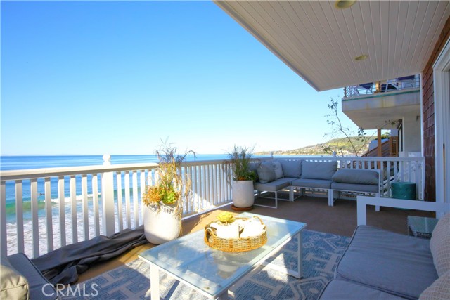 Available May–September 2026 with a minimum one-month rental, this exceptional oceanfront Laguna Beach property offers the ultimate coastal lifestyle just steps from the sand and within walking distance to the heart of the Village. The beautifully appointed property includes a three-bedroom beachfront main house and a charming one-bedroom guest house, both with stunning panoramic ocean views and private stairs leading directly to one of Southern California’s finest sandy beaches. The main house features hardwood floors, an updated kitchen with honed Carrara marble countertops and stainless steel appliances, newly installed Shade Store window treatments, and luxury vinyl flooring in the primary bedroom. Two ocean-view decks provide the perfect place to enjoy surfers, dolphins, migrating whales, and breathtaking sunsets. Two bedrooms on the main level share a spacious bathroom, with one opening to a charming brick courtyard, while the downstairs primary suite occupies the entire lower level and offers a renovated bath and large private ocean-view deck. The guest house includes a separate living room with expansive views, one bedroom, and a full bathroom, providing comfort and privacy for guests. Located just one block from Coast Highway, the home offers a peaceful beachfront setting with easy access to Laguna Beach’s renowned dining, art galleries, boutiques, and year-round events, as well as nearby activities such as snorkeling, surfing, paddle boarding, and swimming. The property includes a two-car garage and off-street parking for two additional vehicles. Monthly rates are $25,000 from September through May, $30,000 in June $35,000, iJuly 45,000 and August 35,000