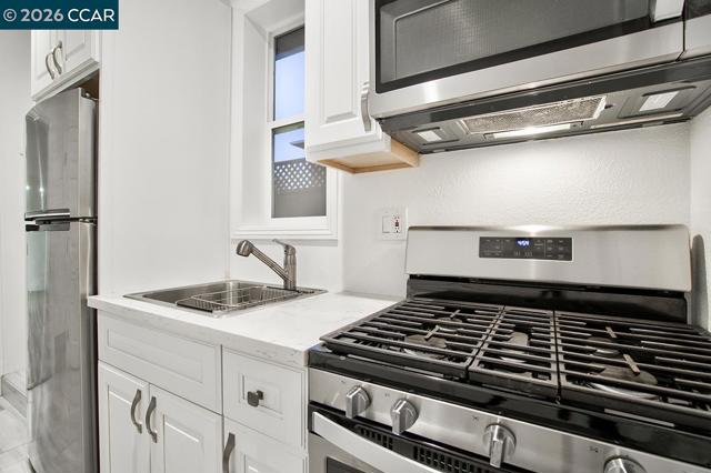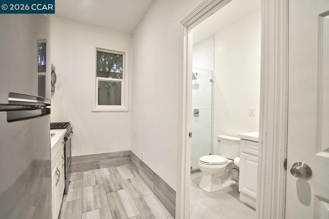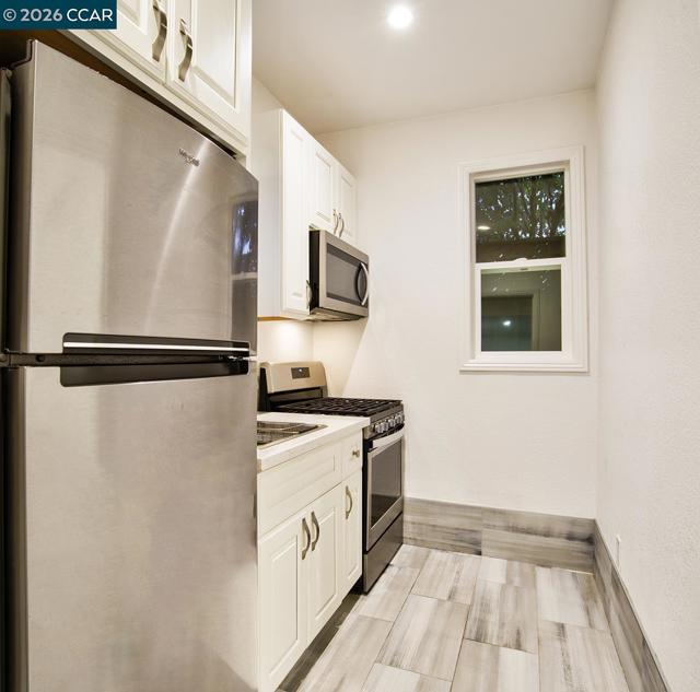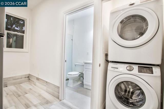 Newer Studio Suite in prime East End neighborhood! Enjoy bright, open space with your own private gated entry. This beautiful home features volume ceilings with laminate flooring, recessed lighting, and efficient wall heating in living area. You will enjoy a modern kitchen and bath featuring stainless steel gas range, stainless steel refrigerator, beautiful large tiled shower, and elegant vanity. There is a full size washer and dryer and private enclosed front yard with patio, storage, and garden area. This lovely home is in a prime million dollar residential neighborhood with plenty of off-street parking. This home is situated in an excellent commute location, just minutes to the waterfront, walking trails, Park St restaurants and shopping, Alameda beach, I-880 freeway, downtown Oakland, SF, SF Ferry, and Oakland airport! This unique studio is ideal for a single professional. All utilities included, except WIFI! Pet friendly! Contact agent for showings.