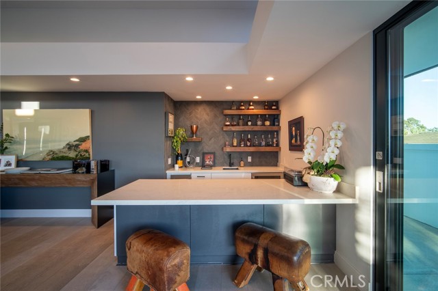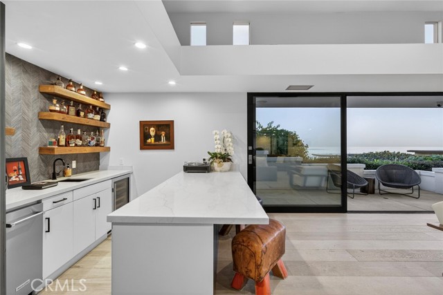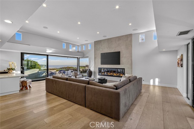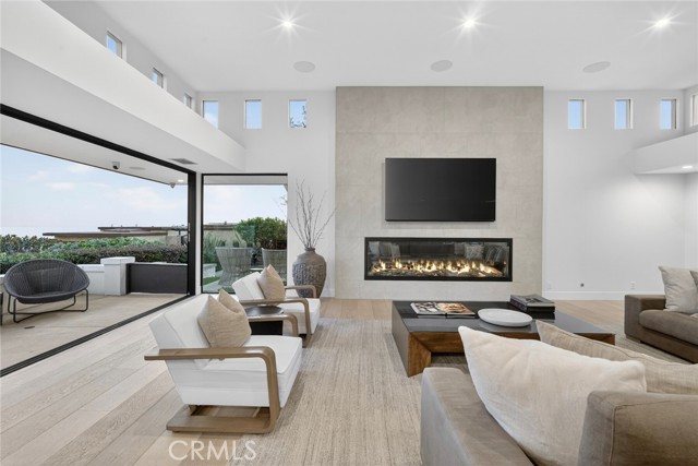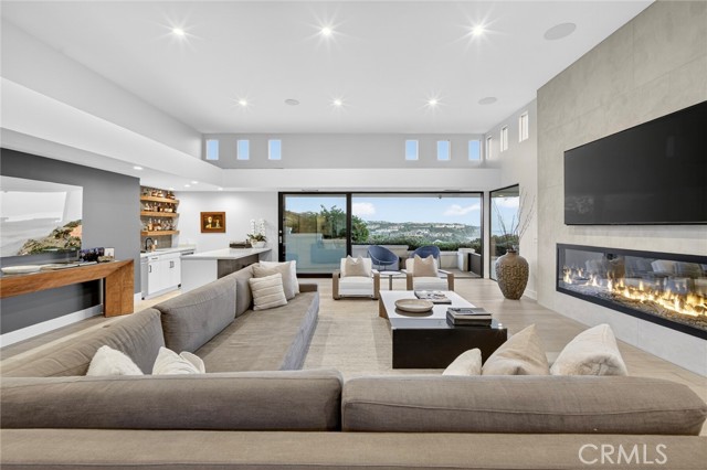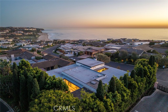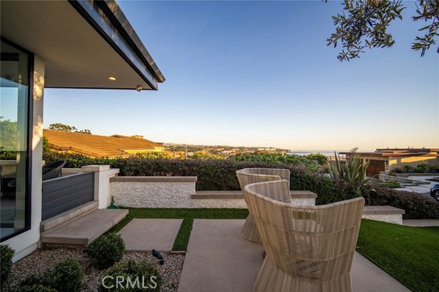 Endless coastal views stretching across the ocean, whitewater, sand, Headlands, and the Ritz-Carlton define this extensively redesigned single-level residence in the guard-gated community of Monarch Bay. Nearly completely reimagined within the last five years, approximately 3,442 square feet of interior living space blend clean architectural lines with a warm, soft-contemporary aesthetic designed for elevated yet comfortable coastal living. Positioned on a desirable corner lot, the home enjoys added privacy and an enhanced sense of openness. An inviting entry atrium introduces the residence and leads into a light-filled great room seamlessly connected to multiple outdoor spaces. Smooth-coat walls, refined detailing, and carefully selected materials create a sophisticated yet welcoming atmosphere throughout. Outfitted with premium Miele appliances, the kitchen flows naturally into the living and dining areas, supporting both relaxed daily living and effortless entertaining. Serving as the architectural centerpiece, the dramatic living room showcases soaring 12-foot ceilings, expansive Fleetwood windows and doors, oversized sliders oriented toward the ocean views, an 8-foot glass fireplace, and a built-in wet bar. Intentional spatial design maximizes natural light, enhances sightlines, and creates fluid indoor-outdoor living across interconnected gathering spaces. Integrated wiring for cameras and whole-home speakers supports modern living while maintaining the home’s clean architectural aesthetic. Outdoors, a newly completed pool, spa, water features, hardscape, softscape, and putting green establish a private resort-style setting. A beautifully landscaped entry courtyard, mature olive tree, and curated lighting elevate the arrival experience. Residents of Monarch Bay enjoy exclusive access to the Monarch Bay Private Beach Club, operated by the Waldorf Astoria Monarch Beach, offering beach chair service, dining, bar, and social events, along with tennis, pickleball, and playground amenities. Moments from five-star resorts, championship golf, and world-class beaches, this refined single-level residence offers exceptional coastal views and an elevated lifestyle within one of Southern California’s most sought-after guard-gated communities.