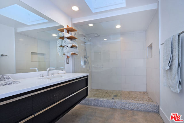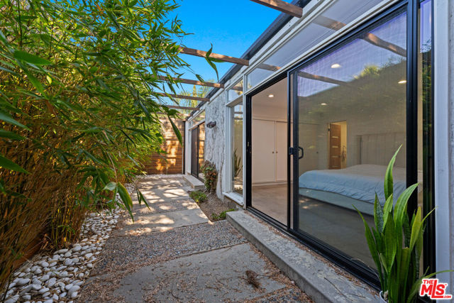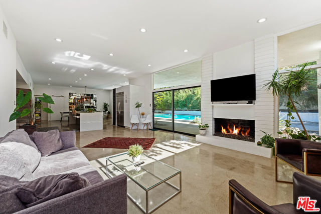 Mid century modern architecture in the Sherman Oaks hills offers an open concept floor plan, high ceilings and natural light filled rooms. Floor to ceiling glass, polished concrete and a comfortable indoor/outdoor flow. Center island kitchen and casual dining area are great for entertaining. Living area includes a fireplace, looks out and opens to the very private yard, pool and covered patio. 3 bedrooms all have walls of glass that open to a courtyard and the outdoor areas. The primary suite includes a remodeled bathroom with glass shower and dual vanities. Attached garage with direct entry to home! Gated front entry courtyard. Prime location with easy access to Mulholland Drive, Beverly Hills and the Westside.