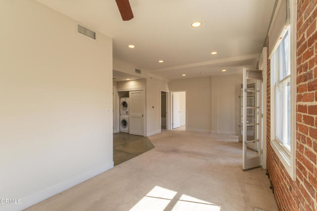 Welcome to The Livingstone on Los Robles, an award-winning historic preservation community in the heart of Pasadena. Once the site of the historic Livingstone Hotel, built by renowned architect Myron Hunt and Walter Webber, this iconic building was thoughtfully reimagined in 2010, blending classic architectural character with modern urban living. Located on the third floor, this move-in ready one-bedroom residence offers a stylish and comfortable retreat. Upon entering, polished concrete floors set a contemporary tone while soft carpeting in the living room and bedroom adds warmth. The open living and dining area features recessed lighting, a ceiling fan, and an exposed brick accent wall that highlights the building's historic charm. Two sets of French doors open to a covered private balcony, creating the perfect place to enjoy a morning coffee or unwind in the evening. The kitchen is well appointed with custom cabinetry featuring ambient up-and-down lighting, recessed lighting, and a full suite of appliances, including a gas range, microwave, oven with warming drawer, stainless steel sink, dishwasher, and refrigerator, offering both functionality and style. Just off the living space, the full bathroom includes tile flooring, a single-sink vanity, a Toto toilet, and a deep soaking tub with shower combination. The bedroom provides a comfortable and private retreat with carpeted flooring, recessed lighting, a ceiling fan, dual-pane windows, a brick accent wall, and a spacious walk-in closet. Additional features include dual-pane windows throughout and a Nest thermostat system for modern climate control. The secure building offers convenient access to Pasadena's vibrant downtown lifestyle. Ideally located along South Los Robles, the Livingstone places you moments from the Metro Rail, Old Town Pasadena, the South Lake District, Paseo Colorado, the Playhouse District, and an array of dining, shopping, and entertainment options. This residence offers a unique opportunity to experience Pasadena's rich history paired with the convenience of contemporary city living.