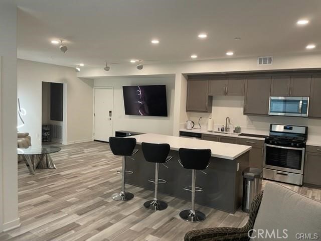 Welcome to the beautiful community known as "The Resort." This three-bedroom, two-bath condo is on one level, located on the 3rd floor, and easily accessible by elevator. With an open-concept family room, kitchen with stainless steel appliances, and eating area. The window blinds operate via remote control. This is a partially furnished condo. The primary bedroom includes a queen size bed and dresser, and the attached bathroom has a walk-in closet and a shower. The second bedroom also has a queen size bed, and the third bedroom has an air mattress. The living room has a large flat screen TV mounted on the wall over the free standing fireplace. WiFi is included. The 2 car garage on the first level has two overhead storage racks and exits to the covered hallway just steps from the elevator. The Resort offers a fitness center, and yoga studio, resort style swimming pool and spa, and B-B-Que area, and dog parks. The Club on 6th clubhouse also has a banquet room and a business center. So much to see and enjoy!