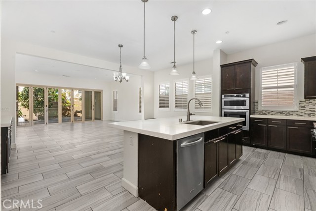 Welcome to this rare single-story home in the highly desirable Pavilion Park in Great Park. This beautifully upgraded residence offers 3 bedrooms, 3 full baths, and a versatile office that can also serve as a fourth bedroom, all on one convenient level. The home features an open floor plan with an elegant entryway, high ceilings, and wide hallways. The gourmet kitchen boasts caesarstone countertops, a large island, stainless steel appliances, tile backsplash, and a walk-in pantry, flowing seamlessly into the dining area and spacious great room. Folding glass doors open to the California Room and expansive backyard, creating perfect indoor-outdoor living. The primary suite opens to the backyard and includes a luxurious bathroom with tile flooring, double sinks, a walk-in shower, soaking tub, and walk-in closets. The second bedroom has an attached bathroom with a walk-in shower, while the third bedroom and office share the third bathroom. An individual laundry room and ample storage throughout add everyday convenience, complemented by recessed lighting throughout the home. Residents enjoy resort-style amenities throughout Great Park, including parks, pools, clubhouses, sports courts, gardens, and scenic trails, all close to top Irvine schools, shopping, dining, beaches, and major freeways.