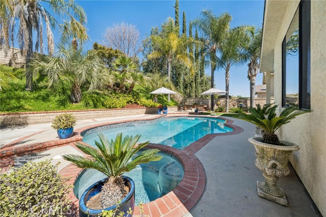 Gorgeous, remodeled Wildwood Hills pool home ready to move in! So many nice improvements and the seller enlarged the downstairs with permit to create a bigger family room that really expands the space! Newer roof, pool has been re-plastered, newer plank flooring and carpet. The master bath was gutted and redone in 2021 and the use of space and upgraded finishes is the nicest I have seen in this model. Oversized shower, double sinks with quartz counters, subway tile - truly exceptional! Large walk-in closet too and the second hallway bath was also redone. HVAC and whole house fan also are practical, appreciated improvements. This model offered the 4th bedroom as a loft and this seller made it a true 4th bedroom, so you have 4 bedrooms, all upstairs. Wildwood Hills is one of Saugus’ most popular neighborhoods known for good-sized lots, the hills that surround the neighborhood, Davidon quality and no HOA or Mello Roos taxes. This home is a winner!
