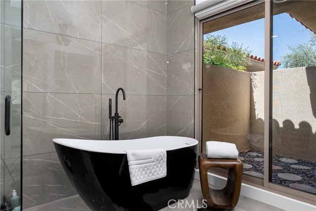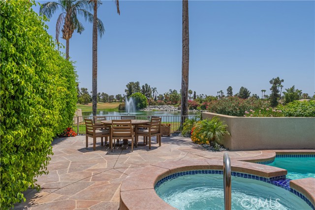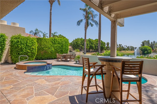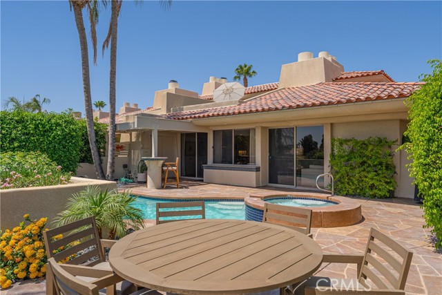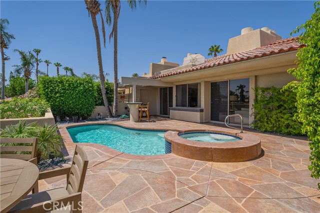 Discover unparalleled sophistication in this stunningly reimagined former model home, nestled within the prestigious Rancho Mirage Country Club. Spanning 3,250 sq. ft., this 3-bedroom, 3.5-bath masterpiece seamlessly blends timeless elegance with modern luxury. Showcasing rare red cedar tongue-and-groove vaulted ceilings in the entry, living room, stairwell, and primary suite, the home exudes warmth, character, and architectural charm. Every detail of this home has been thoughtfully designed and meticulously updated to create an inviting yet stylish retreat. The kitchen, a true chef's dream, boasts contemporary finishes, sleek cabinetry, an extended center island, and modern appliances. Perfect for entertaining or casual dining, this space effortlessly complements the open-concept floor plan. Wide plank white oak flooring graces the main living areas, while solid core oversized pocket doors connect each space seamlessly, flooding the home with natural light. No element has been overlooked in the home's extraordinary transformation. The bathrooms have been fully updated with modern fixtures and finishes, reflecting a refined design aesthetic. Fresh interior paint highlights a neutral, sophisticated color palette, while updated electrical systems, including can lighting, elevate functionality and ambiance throughout. Every room has been curated to balance style with comfort, making this home truly turnkey. Step outside and experience the ultimate in desert living. The backyard is a private oasis featuring a newly replastered pool and spa with updated tile, perfect for relaxation or entertaining. An integrated mister system ensures comfort even on the warmest days, while the inviting patio area provides a serene escape for outdoor gatherings or quiet solitude. Additional upgrades include energy-efficient windows, modernized flooring, and enhanced appliances and equipment, all designed to ensure an effortless living experience. Located within one of the desert's most coveted communities, this home epitomizes elegance, functionality, and attention to detail. Whether hosting lively gatherings or savoring peaceful moments, this property offers the perfect blend of beauty and practicality. Don’t miss this rare opportunity to own a home that is more than a residence—it's a sanctuary of style and sophistication. Your dream home awaits.