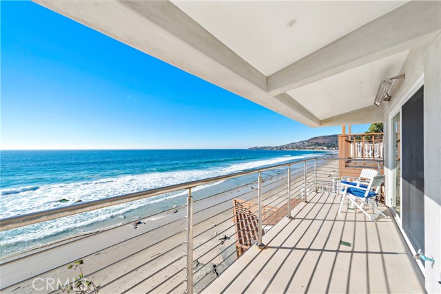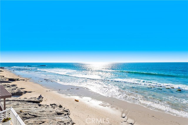 FURNISHED OCEANFRONT Laguna Village location! This is the lowest unit and closest to sand. This triplex sits just above the sand with private stairs to the beach. This lower detached two story apartment is remodeled, clean and simple and offers beautiful ceramic tile flooring that looks like hardwood throughout, new beautiful kitchen including stainless refrigerator, dishwasher, electric stove and microwave. Inviting dining area just off kitchen with spacious wrap around ocean view deck off living room for relaxing and sunbathing. Main level bedroom is in the back and is nice and quiet and offers King bed, recessed lighting and ceiling fan. Bedroom has a dresser and clothes rack only - no closet. The bath features glass enclosed shower, dual sinks and separate toilet room. The second bedroom is downstairs and features King bed. Downstairs bathroom has separate shower and soaking tub. Oak street beach is one of the best beaches in town for surfing, paddle boarding and skim boarding. Beautiful sandy beach, very picturesque and tranquil yet teaming with surf activity and nature. One block off coast highway, this quiet location offers off street parking for one car, and shared free laundry. Convenient to world class galleries, shops, and dining nearby. Submit on short term. Call for seasonal rates