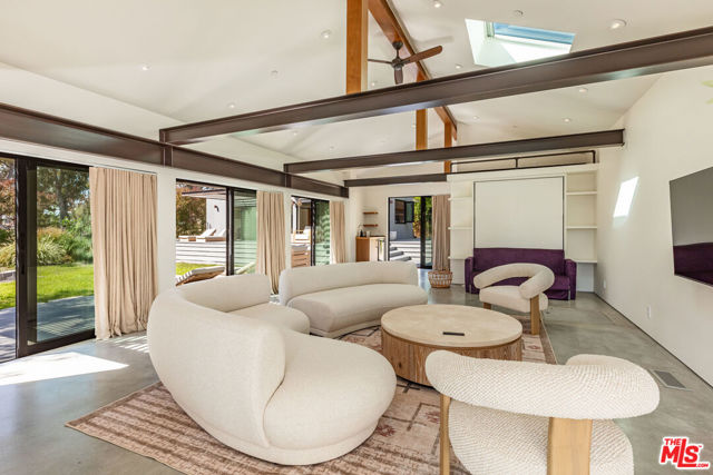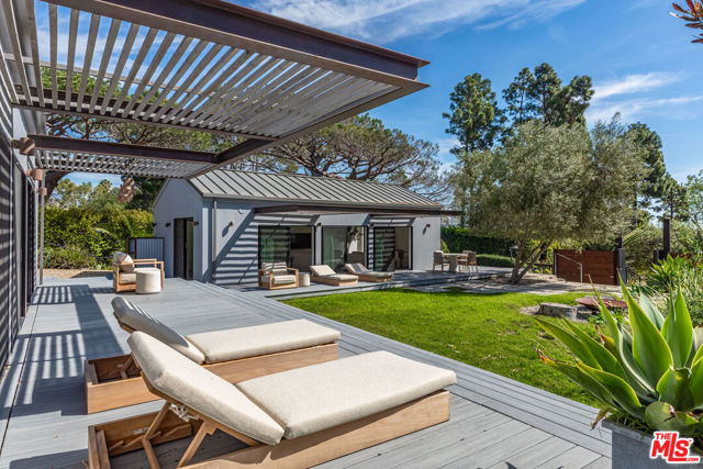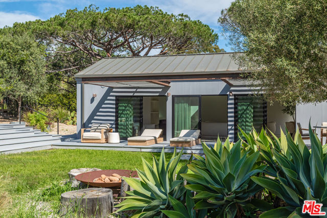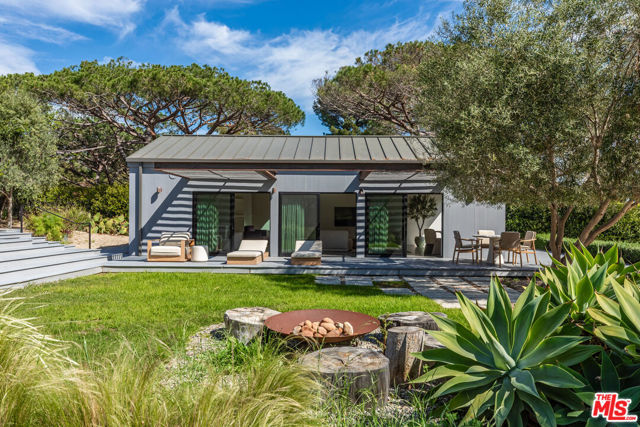 Nestled behind the gates of one of the most elite and desirable gated communities in Malibu, Billionaire's Bluff, this newly constructed coastal retreat offers an exceptional blend of privacy, design, and effortless beachside living. Tucked away on a quiet, exclusive street, the property features a beautifully appointed 1-bedroom house alongside a detached, free-standing studio, each designed as its own private escape. A dedicated entrance and deeded private stairs to Paradise Cove Beach place the best of Malibu just moments away, while Little Dume renowned for its world-class surf and sun-drenched shoreline is just a short stroll from your door. The house showcases modern coastal design with floor-to-ceiling glass, seamless indoor-outdoor flow to a wraparound deck, polished concrete floors, and an integrated sound system. The chef's kitchen features stainless steel appliances, custom cabinetry, quartz countertops, and a breakfast bar, opening to a bright living area, a serene garden-view bedroom, and a spa-inspired bath with refined finishes. The detached studio offers a striking and versatile space with vaulted ceilings, exposed beams, and walls of glass. A wraparound deck extends the living area outdoors, while inside, an ocean-view lounge and expansive open space create the perfect setting for relaxation, creative work, or wellness. A built-in full-size Murphy bed and second bathroom add both function and flexibility. Surrounded by lush, landscaping, the grounds feel like a private resort complete with a hot tub, koi pond, fire pit, outdoor clawfoot soaking tub and shower, and a serene central lawn, all just steps from the sand. Blending elevated design with ultimate privacy and coveted beach access, this is a rare offering for those seeking an inspired Malibu retreat.