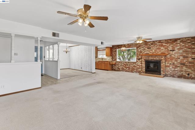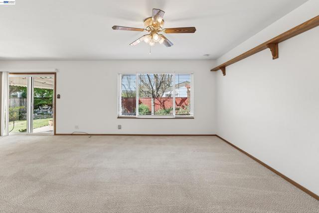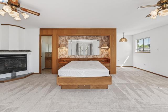 Owned solar. Lovely porch in front of house to relax in the morning sun. This charming home boasts a Gas range in kitchen, newer SS appliances, pantry with pull out shelving, window overlooks side yard. Formal dining room opens to the huge family room with fireplace and sliding glass door to the covered patio. Spacious 3 bedroom, 3 bath with two primary suites. The large primary has a fireplace, walk in closet and sitting area with another closet. Large bathroom with dual sinks and stall tiled shower with seperate water closet. Second primary suite has hardwood floors and attached tiled bathroom with stall shower, vessel sink and modern vanity. Third bedroom is smaller approx 10x10 with hardwood floors and built in closet. Ceiling fans are in all bedrooms and the family room. The front yard is drought tolerant and there is small patch of grass in the backyard including fruit trees and rosemary. Side yard large enough for RV/Boat parking. The storage shed is not included. Short distance to schools and shopping. Fresh Interior Paint. All appliances included.