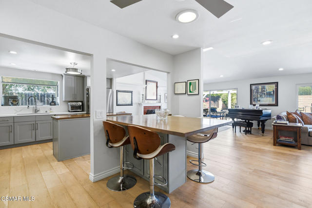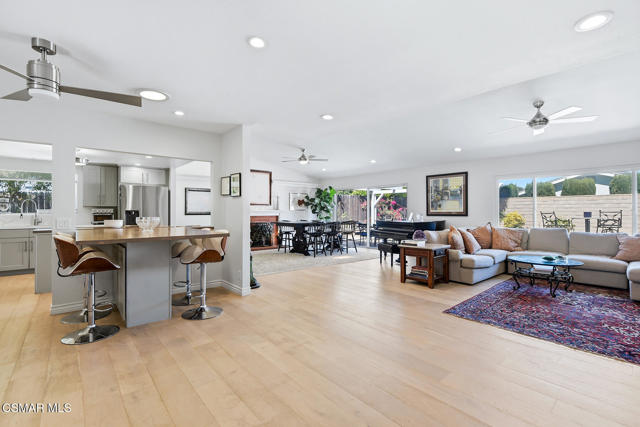 Welcome to 14 Nadine Court, a beautifully remodeled 4-bedroom, 2-bathroom home located in the sought-after Wendy Wood neighborhood of Newbury Park. Situated on a quiet cul-de-sac and close to local parks, this home offers both privacy and convenience. The interior features an open and functional floor plan with updated wide-plank wood flooring, recessed lighting, and natural light throughout. The remodeled kitchen includes stainless steel appliances, modern cabinetry, ample counter space, tons of storage, and a center island that opens to the living and dining areas, creating an ideal setting for everyday living and entertaining. Seamless access to the backyard, enhancing indoor-outdoor flow. The private outdoor space features a pool and spa (recently refinished), patio area, and room for outdoor dining or relaxation. The primary bedroom includes an en-suite bathroom, while the additional bedrooms offer flexibility for guests, office space, or family needs. Additional features include central heating and air conditioning, and an attached 2-car garage with a spacious driveway. The property also offers RV access, providing added convenience for additional parking or storage, as well as fully paid solar for improved energy efficiency. Located near parks, schools, shopping, and dining, this home presents a great opportunity to enjoy comfortable living in a well-established Newbury Park neighborhood.