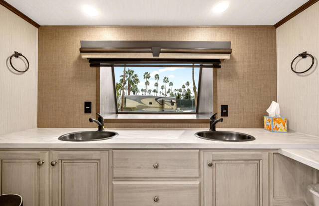 I am delighted to introduce you to an unparalleled opportunity for sophisticated resort-style living, nestled within the highly sought-after Outdoor Resort Palm Springs. Located steps away from the pool, spa, restroom and laundry facilities. This premier, all-age luxury RV community offers an exquisite blend of exceptional recreational facilities, vibrant social engagements, and the stunning natural beauty of the desert landscape. It's not just a location; it's a complete lifestyle experience.Lot 533 includes a meticulously maintained 2023 Forest River luxury RV. This particular model offers comfort and thoughtful design, featuring a single bedroom and 1.5 baths, engineered for seamless full-time functionality. Its pristine condition and array of modern enhancements truly set it apart as a turnkey opportunity. Inside, the private primary bedroom serves as a serene retreat, an automatic queen-size bed for adjustable comfort. The accompanying spacious primary bathroom is a spa-like sanctuary, boasting an expansive walk-in shower, a contemporary bidet, and a stylish dual-sink vanity, providing ample space. An additional half-bath offers the convenience of a stacked washer and dryer unit, and both toilet facilities are permanently connected to the main sewer line, ensuring effortless living. The inviting living area is designed for both relaxation and entertaining. It features two loveseats, one convertible into a pullout bed, ideal for accommodating overnight guests, two additional lounge chairs, a dining table for two, and practical coffee tables. Throughout the RV, you'll discover an abundance of thoughtfully integrated storage solutions, maintaining a clean and organized space. This exceptional 2023 Forest River RV, coupled with the world-class amenities and vibrant community atmosphere of the Outdoor Resort, represents an extraordinary value. It is currently offered significantly below the current market, presenting an unparalleled chance to immerse yourself in luxurious desert living without compromise.