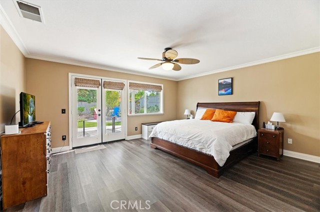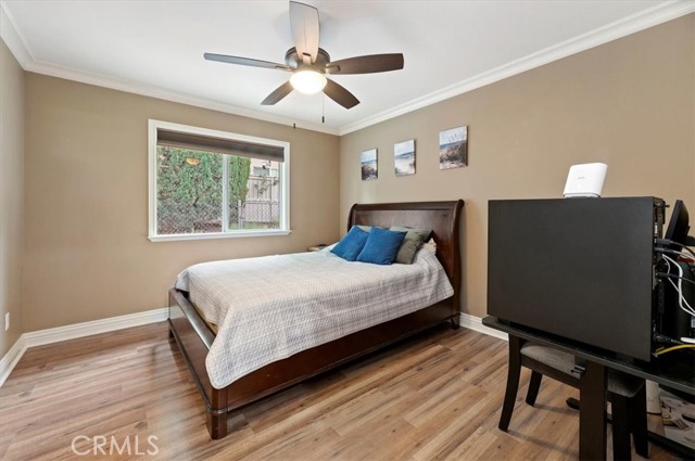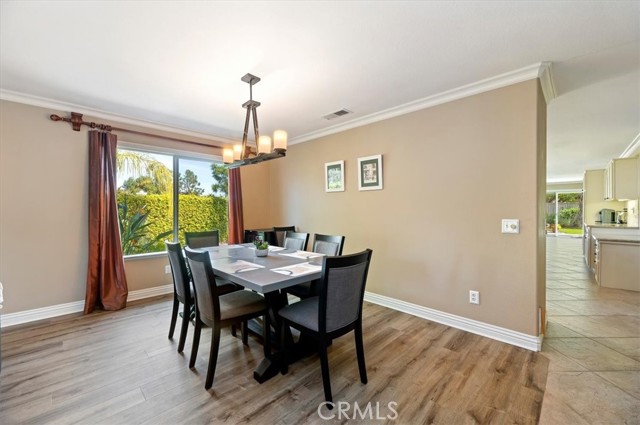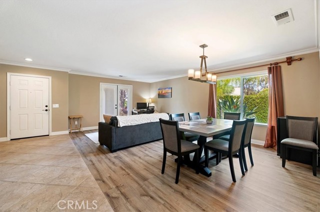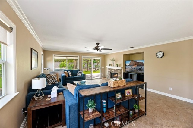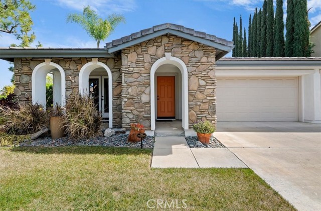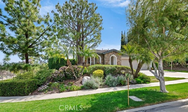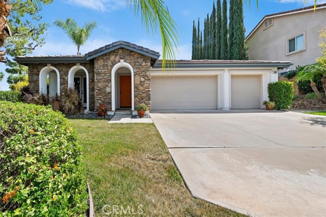 Welcome to this beautiful Eagle Glen single-story home situated on a large corner lot in a well-maintained neighborhood. This 3-bedroom, 2-bath home offers a spacious, light-filled layout with formal living and dining rooms, featuring double doors that open to an inviting front porch. The upgraded kitchen is a chef’s dream, complete with granite countertops, travertine backsplash, a large island, double ovens, stainless steel appliances, and a generous walk-in pantry—all opening to the expansive family room with a cozy fireplace and seamless access to the backyard. Secondary bedrooms include walk-in closets with custom organizers, while the primary suite features a large walk-in closet and an upgraded bathroom with elegant glass tile accents. Step outside to the private backyard oasis showcasing artificial turf, water-wise landscaping, two firepits, mature Pepperwood and Italian Pine trees, lavender, a tranquil fountain, and an Alumawood patio cover—perfect for entertaining. Low HOA and low taxes complete this exceptional offering.