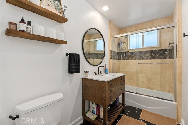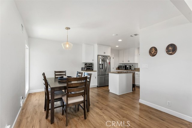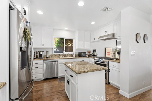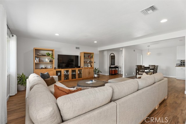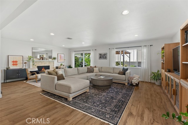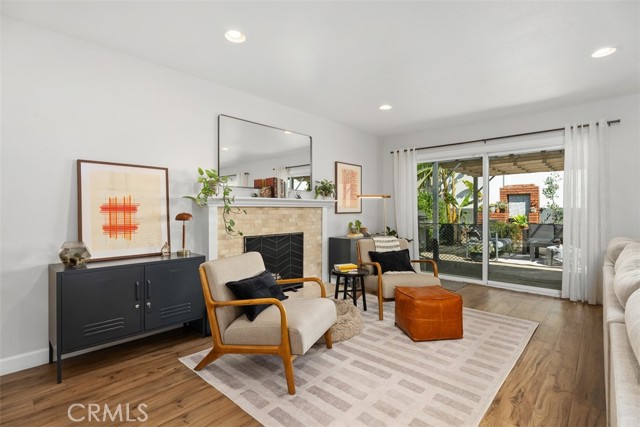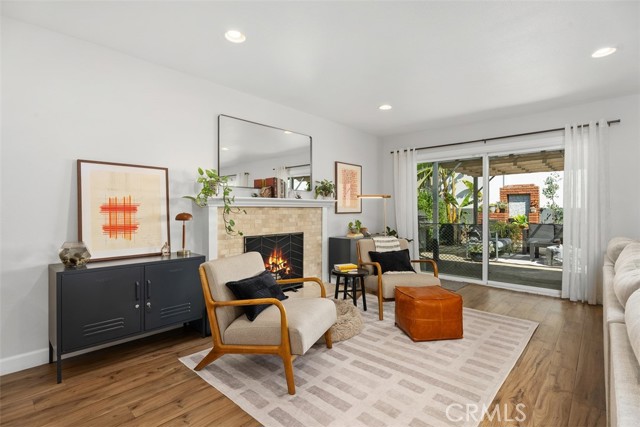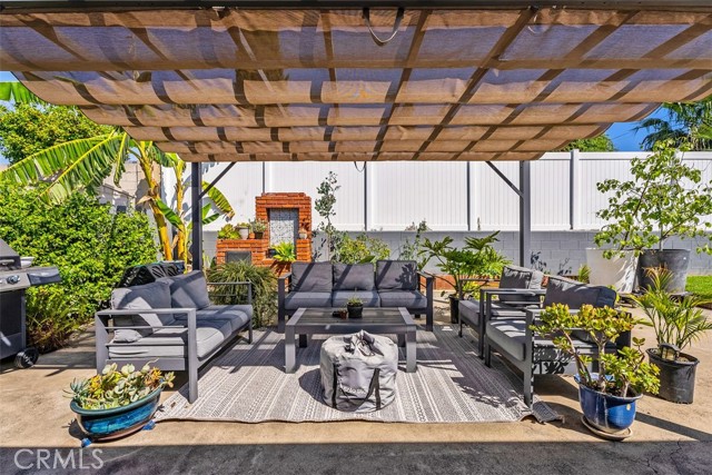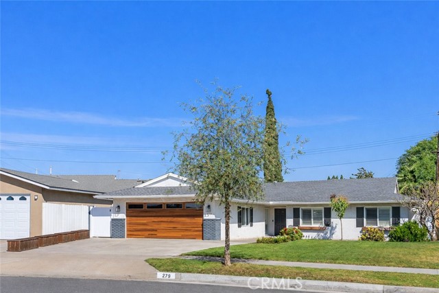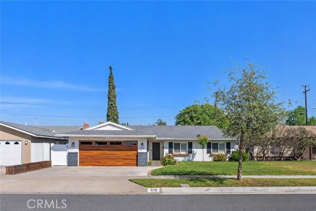 Beautifully updated single-level home showcasing an open-concept layout and thoughtfully curated finishes throughout. From the charming curb appeal—highlighted by a wood-grain garage door and custom window box planters—to the stylish interior details, this home blends comfort and design effortlessly. Inside, the light-filled living room offers a warm and inviting space with recessed lighting, custom window coverings, a cozy fireplace, and seamless access to the backyard—perfect for both relaxing and entertaining. The adjacent kitchen and dining area are designed for everyday living, featuring stainless steel appliances, a slide-in dual oven, French door refrigerator, granite countertops, a center island, and additional peninsula seating. The spacious primary suite serves as a private retreat with an ensuite bath showcasing dual sinks, a walk-in shower, and tasteful farmhouse-inspired finishes. Secondary bedrooms are generously sized and share a beautifully remodeled hall bathroom with updated fixtures and stylish tile flooring. Step outside to a peaceful backyard complete with a covered pergola, expansive patio, grassy area, raised garden beds, and block wall fencing—offering both privacy and functionality. This home delivers the perfect blend of style, comfort, and livability.