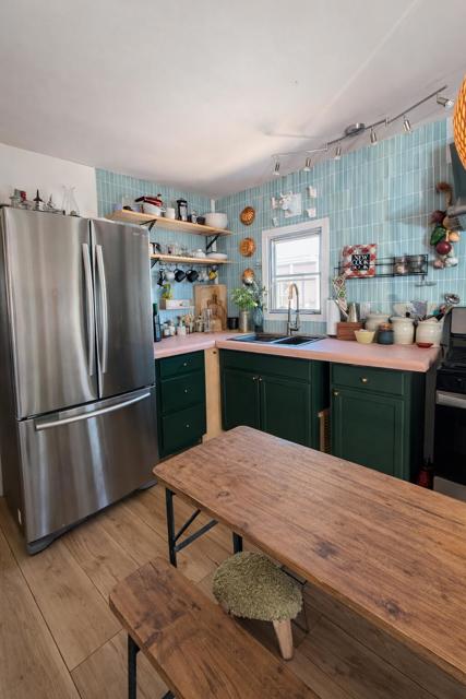 Bohemian chic meets desert charm in this adorable, updated home perched on a hill with sweeping mountain views. Whether you're an investor seeking a smart income opportunity or a family looking to live close while maintaining space, this property offers incredible flexibility--live in one and rent out the other!Ideally located in a small, welcoming community just minutes from downtown Joshua Tree, you'll enjoy easy access to local shopping, dining, and vibrant nightlife. Inside, the home features new plank vinyl and tile flooring throughout, creating a fresh yet cozy feel. The bathroom has been thoughtfully updated, preserving its original tub while adding a beautifully tiled shower for a perfect blend of character and modern comfort.The spacious kitchen shines with an updated tile backsplash, making it both stylish and functional for everyday living or entertaining. Step outside to your large private yard with plenty of space for barbecues or just relaxing on those cool Joshua Tree evenings. With its elevated setting, you'll love the peaceful surroundings and stunning desert vistas right from your doorstep.An incredible opportunity--purchase with Space 22 and both can be yours for just $80,000. Don't miss out on this unique Joshua Tree gem--must see!