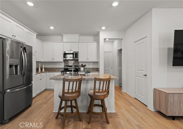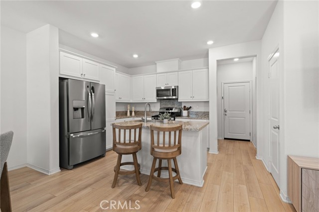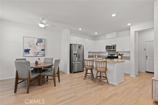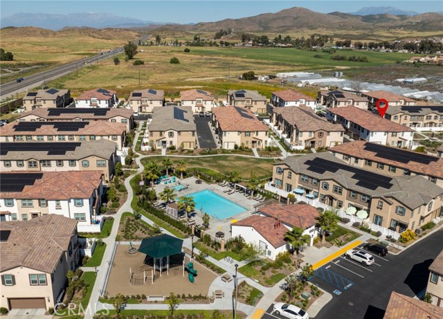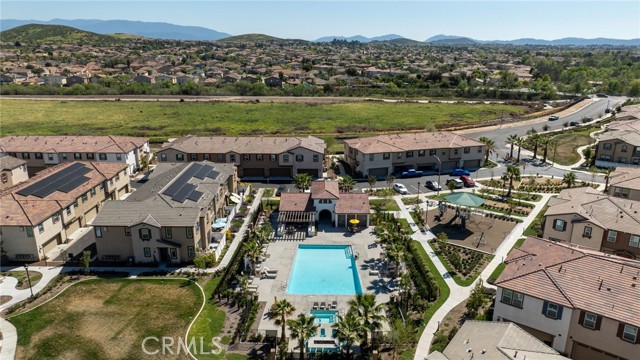 One of the few newer 2024-built homes in Sevilla, ideally located within a courtyard setting and offering modern, low-maintenance living with resort style amenities. The main level features an open floor plan with upgraded luxury vinyl tile plank flooring, kitchen with granite countertops, white cabinetry, and a kitchen island that opens to the living and dining areas. There is also a half bath, enclosed front courtyard patio, and direct access to the attached 2-car garage. Upstairs, the primary suite includes dual vanities, a soaking tub, separate shower, and a large walk-in closet. Two additional bedrooms, a full bathroom, and a laundry room complete the upper level. Additional features include washer & dryer and leased solar that is transferrable. The HOA covers exterior maintenance and the master insurance policy, leaving the owner responsible only for interior coverage which is an added bonus for savings. Residents enjoy resort style amenities including a pool, spa, clubhouse (available for rent for private events), BBQ areas, fire pit, picnic areas, park, cornhole, and walking paths with dog waste stations throughout the community. Conveniently located near Temecula Valley Unified schools, shopping, dining, and just about 20 minutes from the Promenade Mall. FHA & VA approved.