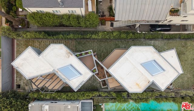 Newly built architect-designed home in the heart of Venice, just three blocks from the beach. Never lived in. This light-filled unit features dramatic geometric windows, a large overhead skylight, a glass floor that fills the bottom unit with natural light, and an open, modern layout that emphasizes privacy. Enjoy a compact, efficient kitchen with new appliances, built-in seating, generous storage, and a movable TV on a track that allows viewing from any part of the bottom floor. Dual balconies provide outdoor space on both sides of the unit, and the property is fully gated with tall hedges and lush landscaping for exceptional seclusion. On-site parking is available within the gated lot.In-unit washer-dryer included in a striking modern detached two-unit project, designed with sculptural lines and clean contemporary finishes. This is a general description of the complex. Individual units may vary slightly.