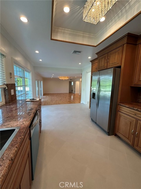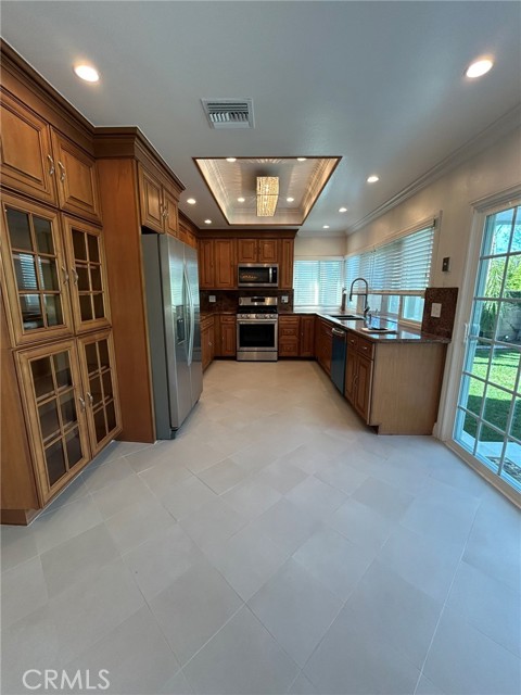 A beautiful, Fully Remodeled Pool Home, just outside of Villa Park Boundaries. This luxury East Villa Park home is Set within the award-winning Villa Park School District. The home offers 4-bedroom and 3-bath with One Bedroom and Bath downstairs. The grand entryway leads into a vaulted ceiling Formal Living Room with tons of natural light coming from the many windows and from the atrium with its beautiful plants that adds a unique touch to the Dining Room. The Kitchen has been remodeled with granite countertops, stainless steel appliances and new cabinetry. The generous family room has a wet bar and an inviting view of the resort like backyard with lush greenery and a sparkling pool and spa. Perfect for entertaining or enjoying with the family in the hot Southern California Summer days. A main-level bedroom and full bath offer ideal space for multi-generational living or guests. Upstairs, the primary suite boasts vaulted ceilings, a private large balcony with mountain views, double vanities, and a spa-style bath with a walk-in closet. There are 2 additional Bedrooms and another full bath upstairs. The fully finished 3-car garage has epoxy floors and plenty of built-in cabinets together with space for the included Washer & Dryer. Beside the large garage there is Plenty of street parking and a generous driveway. This home offers the complete package in one of Orange County’s most desirable neighborhoods.