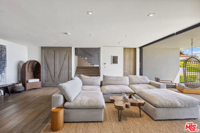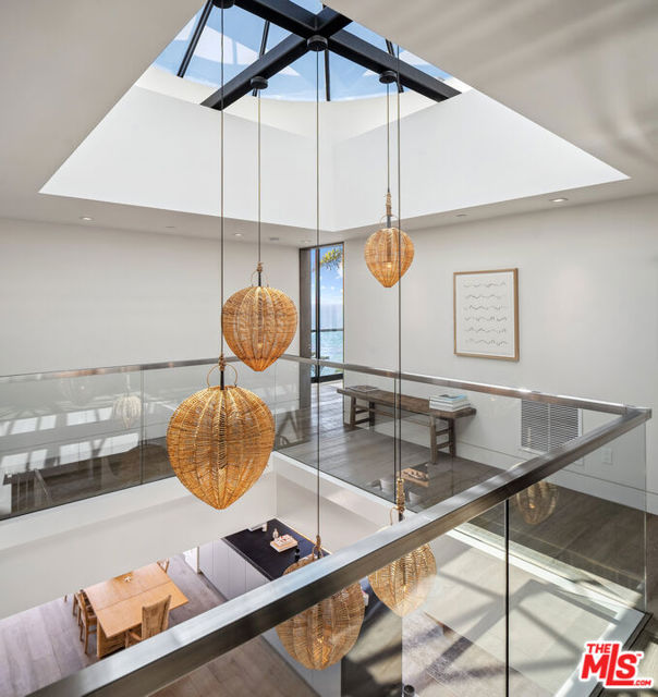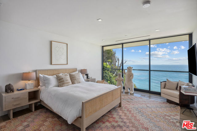Summer lease available! Commanding sweeping ocean vistas from nearly every room, this extraordinary blufftop estate in Malibu blends refined modern living with serene coastal luxury. Conceived by acclaimed architect Doug Burdge and built to exacting standards by Scott Halley, the residence is a fully realized vision of elegance and sophistication enhanced by a rare additional parcel and direct stair access to one of Malibu's most coveted beaches, just past Lechuza Point. Impeccably upgraded with state-of-the-art audio/visual and security systems, the home offers effortless comfort and advanced functionality throughout. The main level features a spacious step-down living room with fireplace, an open dining area, and a versatile office or music room, all oriented to capture the dramatic ocean views. A huge deck off the living room includes a spa and BBQ, perfect for entertaining or relaxing above the coastline. The gourmet kitchen, equipped with top-tier appliances, opens to a second generous deck with stair access to the lush garden terraces below. Nearly every room on this floor enjoys breathtaking views of the Pacific. A dramatic open staircase leads to the expansive top-floor primary suite, a private retreat with panoramic coastline views, a spa-like bath, and a massive walk-in closet. Two additional large bedroom suites complete the upper level, each offering their own stunning outlooks and luxurious finishes. On the lower level, a sleek media and game lounge is complemented by a Sub-Zero wet bar and a temperature-controlled wine cellar. Two additional guest suites complete this floor, providing comfort and privacy for family or visitors. The outdoor spaces are designed for both relaxation and connection to nature, with beautifully landscaped gardens, multiple lounging and dining areas, and an outdoor shower, ideal after a day on the sand. A rare opportunity to enjoy a turnkey bluff estate in one of Malibu's most desirable settings.