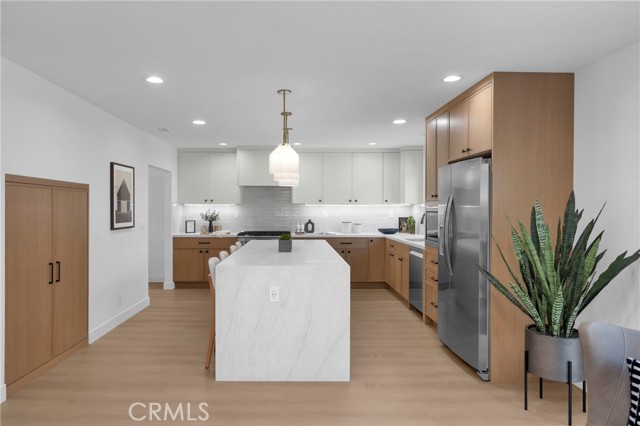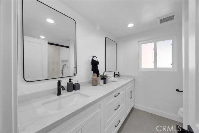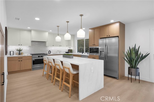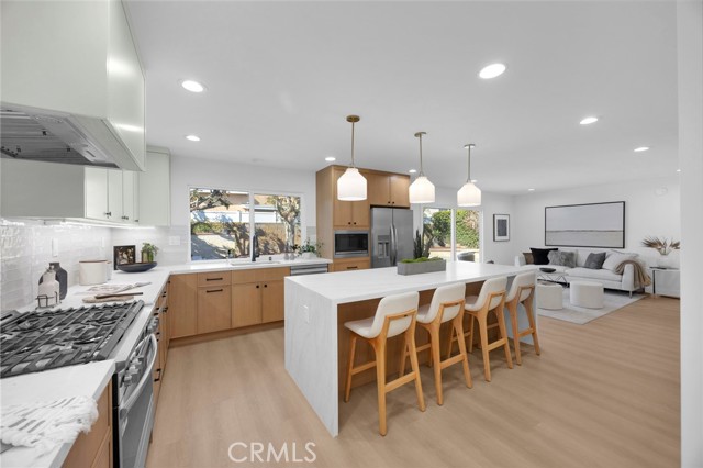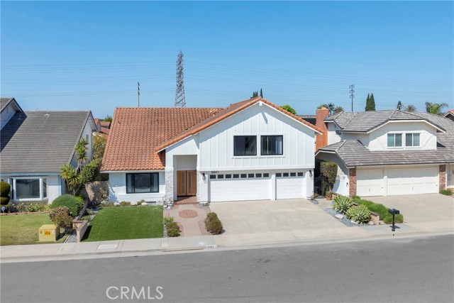 Welcome to 8841 Seaspray Drive, a completely reimagined S&S home in the Goldenwest Estates tract; one of the most highly sought-after neighborhoods in South Huntington Beach. Offering nearly 3,000 sq ft of living space, this fully remodeled, top-to-bottom residence blends modern design, quality craftsmanship, and an unbeatable location. This stunning home features 4 bedrooms plus a spacious bonus/theater room, 3.5 bathrooms, and the rare advantage of two primary suites—including a main-floor bedroom with its own en-suite bath, ideal for guests or multi-generational living. The beautifully renovated kitchen is the heart of the home, complete with a large island, custom cabinetry, quartz countertops, and stainless appliances a Frigidaire Gallery 36-inch gas range—perfect for both everyday living and entertaining. Inside, you’ll find designer finishes throughout, including luxury vinyl flooring, recessed lighting and custom iron stair railing. all-new interior doors. All bathrooms have been upgraded with high-end vanities, designer tile, frameless shower doors, and Kohler fixtures, creating a true spa-like experience. Enjoy peace of mind with extensive system upgrades, including all new PEX plumbing, updated ducting and air registers, a newer HVAC system & water heater, a newly installed 200-amp electrical panel and the convenience of an interior laundry room. Additional enhancements include a new entry door, garage door opener, and an epoxy-finished 3-car garage with ample storage. Step outside to a very private yard designed for entertaining, complete with a sparkling swimming pool and plenty of space for barbecues, gatherings, and relaxing year-round. The home’s curb appeal is elevated by a striking all-stone façade and tasteful, low maintenance landscaping. Ideally located near top-rated schools, parks, shopping, and great restaurants—and just a short 7-minute drive to the sand, Pacific City and iconic Downtown Huntington Beach—this turnkey home truly has it all!