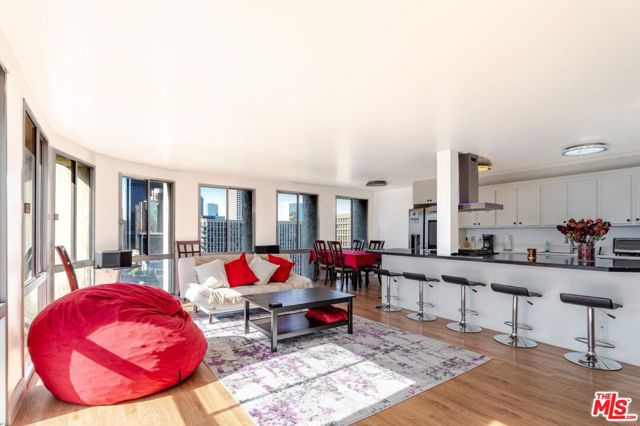 Enjoy elevated city living in luxury condo located at Bunker Hill Tower, featuring floor-to-ceiling windows with stunning views of the Downtown Los Angeles skyline. Inside, the spacious open-concept layout captures incredible sunset and city-light views. The primary bedroom offers impressive outlooks down the Flower Street skyline, while the updated bathroom features sleek white lacquer cabinetry and LED mirrors with built-in magnification. The kitchen is well-equipped with stainless steel appliances, a double-door smart refrigerator, and a gas stove with a vented hood, making it both stylish and functional. Residents enjoy resort-style amenities including an Olympic-size pool, multiple fitness centers, and 24-hour security. The location is unbeatable, just steps from iconic destinations like Disney Concert Hall and The Broad Museum, placing the best of downtown right outside your door. Bunker Hill Tower is one of downtown's premier residential communities, offering amenities such as tennis and pickleball courts, a swimming pool, Jacuzzi, fitness centers, and private event spaces. This is a fantastic opportunity to enjoy comfortable and convenient downtown living.