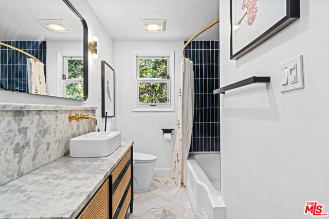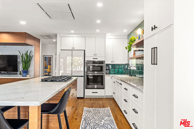 Nestled at the end of a quiet, non-through street and surrounded by lush greenery, this 1,978-square-foot, three-bedroom, three-bathroom home offers a rare sense of privacy paired with effortless indoor-outdoor living. Beautifully upgraded with designer finishes throughout, this charming retreat offers an abundance of natural light, with space to entertain on all scales. At the heart of the home, an open concept living and dining area flow seamlessly into the gourmet kitchen - complete with a large center island with breakfast bar, and professional-grade appliances. Dramatic emerald ceramic tile, bespoke marble surfaces and custom walnut cabinetry further enhance the space, which opens directly to an oversized outdoor terrace - perfect for alfresco dining. Three-bedroom suites consist of a lower-level primary, complete with sumptuous en-suite bathroom, large walk-in closet and sliding doors that open to a private covered patio, and the charming back yard with lush, mature landscaping. Two guest bedrooms share an outdoor terrace with views of the back garden, with an additional two designer-guest bathrooms for added convenience. A finished two car garage and ground floor storage room complete the home. This is a prime opportunity to lease a turn-key property in the heart of Bel Air - moments from the best dining, leisure and transportation links Los Angeles has to offer.