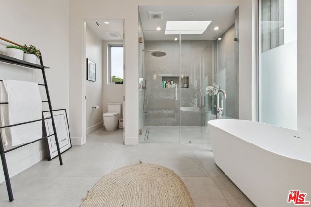 Available for Summer 2026! Experience the epitome of Venice living in this luxury 4 bedroom + office, 4.5 bathroom residence that masterfully balances sophisticated design with Southern California's coveted indoor-outdoor lifestyle. Tucked behind private hedges, this fully furnished architectural gem creates an immediate sense of arrival with its thoughtful fire pit gathering area and elegant front yard. The entry unfolds into an open, sun-drenched space, where soaring ceilings and concrete floors establish the home's modern aesthetic. Recessed lighting and an integrated Sonos sound system extend throughout the interior and into the backyard, transforming ordinary moments into memorable experiences. To the left of the entryway, you'll discover a spacious bedroom featuring a frameless corner window and an en-suite bathroom with a rainfall shower. Situated next to the first bedroom is a powder room- convenient for guests and daily living. The heart of the home is the open-concept living area with light oak ceilings and Fleetwood pocket doors that seamlessly connect to the backyard oasis. A striking fireplace anchors the space while a dining area with a round table sets the scene for lively dinner parties or intimate meals with loved ones. The beautifully designed kitchen is a chef's dream with a custom refrigerator that blends into a wall of built-in cabinets and pantry storage. Floating wooden shelves with under cabinet lighting illuminate the quartz countertops while a Bertazzoni range with dual ovens provides professional-grade functionality. An oversized kitchen island expands the counter space while adding bar seating, ideal for everything from morning coffee to evening cocktails. The backyard is an entertainer's dream, where a heated pool, spa, and sauna serve as the centerpiece. This outdoor space features a custom deck with built-in BBQ and refrigerator, and a dining area with overhead string lighting - perfect for dining al fresco. The second level, unified by light oak flooring, reveals the impressive primary suite, where cathedral ceilings and a cozy fireplace create an intimate retreat. Pocket doors open to a balcony overlooking neighborhood treetops, while a generously sized walk-in closet provides optimal storage space. A rejuvenating en-suite bathroom completes the primary suite, featuring a soaking tub and an oversized shower, complemented by dual vanities, tiled flooring, and a skylight that welcomes abundant natural light. Continue through the hallway to discover two additional bedrooms, each with private en-suite bathrooms. Completing the second level is a bright and airy office and a dedicated laundry room, equipped with a washer and dryer. Additional amenities include an alarm system, central AC and heating, and gated parking, complemented by abundant street parking. With the very best of Venice within reach, enjoy an afternoon game of tennis or experience the popular "Sunset Sessions" at Penmar Golf Course. Enjoy nearby cafes and trendy restaurants like Superba, Companion, and Zinque, while benefiting from proximity to everyday conveniences like Whole Foods, Erewhon, and the shops and restaurants that line Lincoln and Abbot Kinney. Ideally situated in Venice's most desirable pocket, this stunning property provides an intimate retreat and immediate access to the vibrant energy of the Westside.