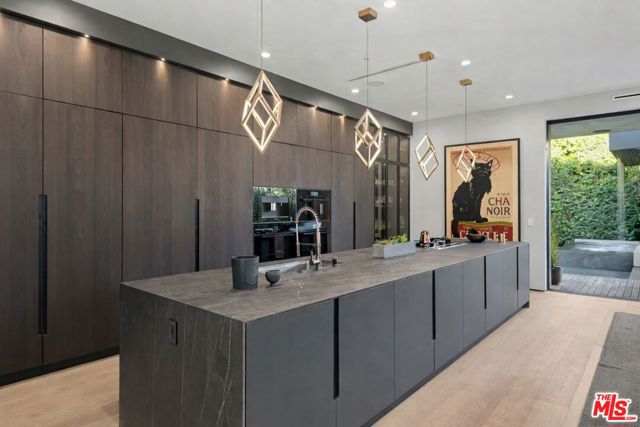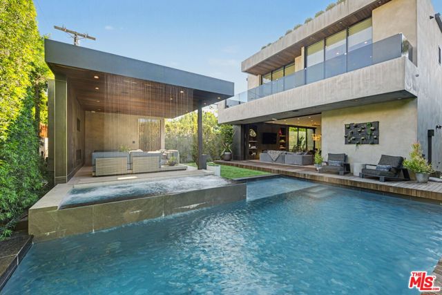 Newly built, gated architectural home with an elevator and approximately 2,000 sq ft of outdoor space, including a professionally designed rooftop deck with a fire pit and views of the Hollywood Hills. Conveniently located near Beverly Blvd, Melrose Ave, and Santa Monica Blvd. and situated between the Grove and the Beverly Center near West Hollywood. The home features an open floor plan with large Fleetwood sliding doors that connect the main living areas to multiple balconies and decks. The kitchen is equipped with top-of-the-line Miele appliances, including a Miele refrigerator and gas stove, along with a large center island that opens to the living and dining areas. The backyard includes a pool and hot tub with water features, cabana, a fireplace, and space for outdoor entertaining. The primary suite offers a spacious walk-in closet, dual shower, spa-style bath, and two private balconies including an outdoor fireplace. Additional features include a home theater, gym, recreation area with wet bar, smart home system, two-car garage with EV charger, and additional gated parking. Rent includes weekly pool service, weekly housekeeping, bi-weekly gardening, and all TVs. Property will be delivered unfurnished.