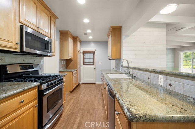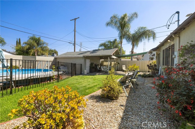 Warm and Welcoming Reseda House for Rent! Enter into a mid-century great room with beamed ceilings, a rustic fireplace and a wall of windows flooding the space with natural light. The kitchen has been remodeled with granite counters, custom backsplash and stainless steel appliances. In addition, the family and dining rooms open to the backyard with a fenced pool, lush lawn, fruit trees and large covered patio. A detached garage provides secure parking and additional storage space. Gardener and Pool Service are included in the rent.