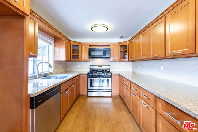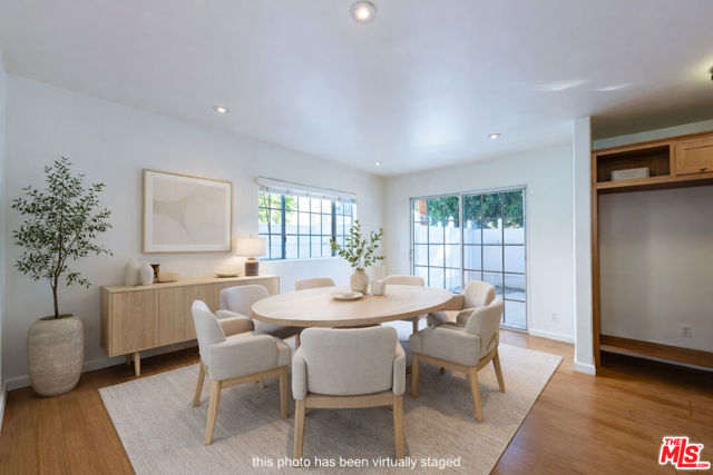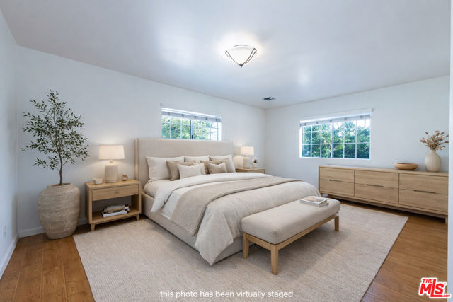Welcome to this charming unit in a quaint six-unit complex, ideally located in the heart of North Hollywood. Thoughtfully designed, this two-bedroom, two-bathroom home offers a comfortable blend of space and convenience. Step inside to a bright and inviting living room with beautiful wood floors that flow into an open-plan dining area, creating a welcoming space for relaxing or entertaining. The freshly painted interior enhances the light and airy feel throughout the home. The kitchen is well-appointed with generous counter space and appliances including a refrigerator, dishwasher and stove/oven. Upstairs, the spacious primary bedroom easily accommodates a king-size bed and offers a peaceful retreat. The ensuite bathroom features a glass shower stall and modern fixtures. The second bedroom is also bright and well-sized; perfect for guests, a home office. The guest bathroom includes a convenient tub-shower combination. Outside, the paved backyard area provides a private outdoor space ideal for grilling or enjoying time with friends. Additional conveniences include hookups for a washer and dryer and parking for one vehicle. Located in North Hollywood, this home is just minutes from local dining, entertainment, shopping, and everything the neighborhood has to offer.