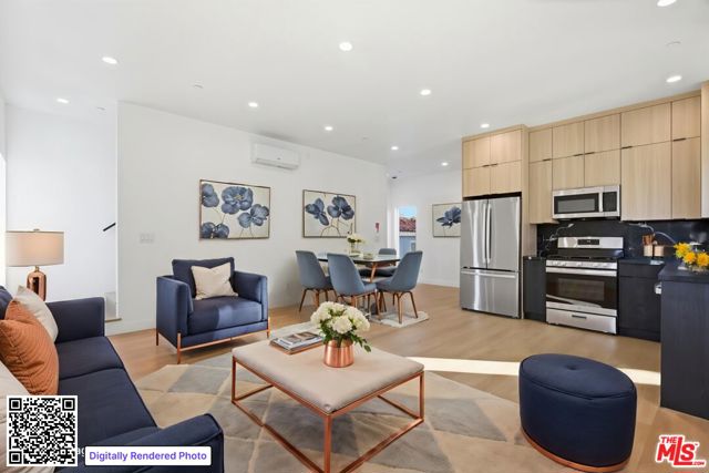 Welcome to this stunning brand new construction residence in the highly sought-after West Adams neighborhood, one of Los Angeles' most vibrant and rapidly evolving communities known for its incredible dining scene, creative culture, and central location. Perfectly situated just minutes from Culver City, Downtown Los Angeles, USC, and the Westside, the area offers convenient access to some of the city's most popular restaurants, cafe's, and nightlife including Highly Likely, Mizlala, Alta Adams, Tartine, and many other local favorites that make West Adams one of LA's most exciting places to live. This bright and spacious 3-bedroom, 3.5-bathroom modern home was thoughtfully designed with both style and functionality in mind. The open concept layout is filled with natural light and enhanced by high ceilings, skylights, and premium finishes throughout. Large living spaces flow seamlessly into the kitchen creating an ideal environment for both everyday living and entertaining. The sleek contemporary kitchen features custom cabinetry, designer stone countertops, and stainless steel appliances including a gas range, oven, microwave, refrigerator, and dishwasher. The home also includes the convenience of in-unit washer and dryer. Each bedroom is generously sized and includes walk-in or custom closets, while each room is equipped with its own individual heating and cooling system allowing for personalized comfort and energy conservation. The bathrooms showcase modern finishes and clean contemporary design. One of the home's most impressive features is the approximately 550 square foot private rooftop deck (not included in the interior square footage) offering beautiful open views and the perfect space for relaxing, entertaining, or enjoying sunsets over the city. In addition, the residence features a private yard, providing rare outdoor space for a home of this style and location. Additional highlights include high-end materials, abundant natural light, spacious modern living areas, skylights, premium flooring, and designer finishes throughout. Located in the heart of West Adams, residents enjoy a unique blend of neighborhood charm and city convenience with easy access to the Expo Line, Culver City tech and studio hubs, Downtown LA, and the Westside beaches. A rare opportunity to live in a beautifully designed brand new modern residence in one of Los Angeles' most desirable and dynamic neighborhoods. -- (3 units on property. Photos are a mix of all the units with same finishes. Furnished photos are virtually staged)
