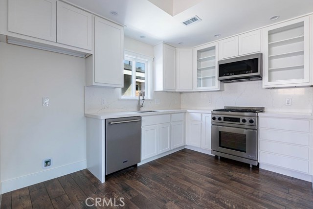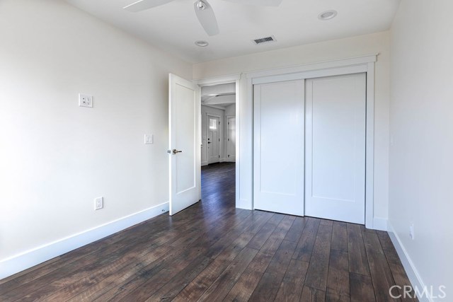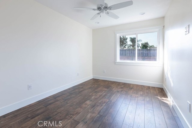 Newer, fully detached back house located on N Maplewood in a charming residential neighborhood in Orange. Ideally situated near Old Towne Orange Historic District, Chapman University, and a variety of shopping and dining options. This beautifully upgraded home offers privacy and style with no shared walls and thoughtful finishes throughout. Features include vaulted ceilings, quartz countertops, white cabinetry, and stainless steel appliances. The spacious floorplan includes two well-sized identical bedrooms with ceiling fans and generous closet space. Additional highlights include an interior laundry area with stackable washer and dryer, a dual-sink bathroom with tub/shower combo, and wood flooring throughout with no interior steps. The home is also equipped with central air conditioning, recessed lighting, under-cabinet kitchen lighting, USB outlets, and is prewired for internet and TVs. Enjoy your own private entrance, one assigned driveway parking space (no garage), and a beautifully designed private patio with turf and mature landscaping. Street parking is plentiful for a second vehicle. Gardening service is included. This stunning private ADU offers the feel of a standalone home in a highly desirable location. Sorry, no pets permitted. Available June 3, 2026.
