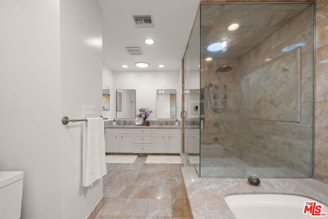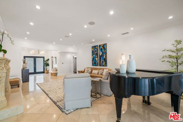 Situated on a quiet street in prestigious Trousdale Estates, this gated contemporary residence offers refined luxury and effortless indoor-outdoor living on nearly one-third of an acre of lush, tropical grounds. With over 5,000 square feet of living space, the home delivers scale, privacy, and a true resort-style experience rarely available for lease. Thoughtfully designed with an open, flowing floor plan and abundant natural light, the residence features six bedrooms and six and a half baths. The main level is ideal for comfortable living and entertaining, offering four en-suite bedrooms, including an expansive primary suite, along with formal living and dining rooms and a seamless connection between the kitchen, breakfast area, and den. This functional layout allows for easy single-level living while still providing generous space throughout.The first-floor primary suite serves as a private retreat, complete with an oversized walk-in closet and spa-style bath featuring a Jacuzzi soaking tub with jets, a separate oversized shower, and dual vanities. French doors open directly to the backyard, connecting to the pool and gardens. A chef's kitchen anchors the home, highlighted by a large island with a 5-burner Wolf range, custom cabinetry, and ample counter space. The gourmet kitchen opens to a sunny breakfast room and flows into a spacious family room/den with a fireplace, bar, and surround sound system, ideal for everyday living and entertaining. The home also features three fireplaces in the formal living room, den, and dining room. Upstairs, two generously sized bedrooms share a large bath, offering flexibility for guests, a home office, or extended living. A dedicated game and entertainment room elevates the home's lifestyle appeal, featuring movie theater seating, an 84" screen, and a pool table, perfect for hosting or relaxing at home. French doors and windows line the rear of the home, opening to a backyard that feels like a private tropical paradise. The grounds include mature landscaping, multiple terraces, and a resort-style pool and spa with heater, along with a large outdoor bar and BBQ area designed for effortless entertaining.In front, enjoy your own basketball hoop with room to play-another added amenity that enhances the property's versatility. Additional features include high ceilings, recessed lighting, copper plumbing, ample storage, a grand double-door entry, parking for up to six cars, and full gated privacy.Located moments from world-class dining, shopping, and entertainment, this exceptional property offers the best of Beverly Hills living. This is a rare opportunity to lease a true garden estate in one of the city's most coveted neighborhoods. Also available fully furnished for $35,000
