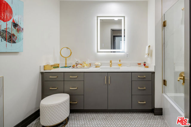 Welcome to Orlando 8, a new built luxury residence offering the perfect blend of architectural sophistication and contemporary comfort in one of Los Angeles's most sought-after neighborhoods. This stunning unit spans approximately 1,325 sq ft and features a thoughtfully designed open floor plan with 2 bedrooms and 2 full bathrooms. The spacious open concept living area is bathed in natural light from your private balcony and flows seamlessly into the chef's kitchen, outfitted with quartz countertops, soft-close cabinetry, and high-end Samsung appliances, including a French-door refrigerator and gas range. Both bedrooms are positioned for privacy as well as each full bathroom showcasing spa-inspired finishes, illuminated mirrors, brushed-gold fixtures, and porcelain-tiled showers and soaking tubs. The primary suite offers generous proportions and a serene atmosphere designed for comfort and retreat. Additional highlights include wide-plank wood floors, recessed lighting, in-unit laundry, central air + heat, gated parking spot, and secure building access. With its prime location near Melrose, Beverly Grove, and West Hollywood's premier dining, shopping, and nightlife, Orlando 8 delivers a rare opportunity to experience design-forward living in the heart of the city. Discover the perfect balance of style, function, and luxury. Welcome home to Orlando 8.