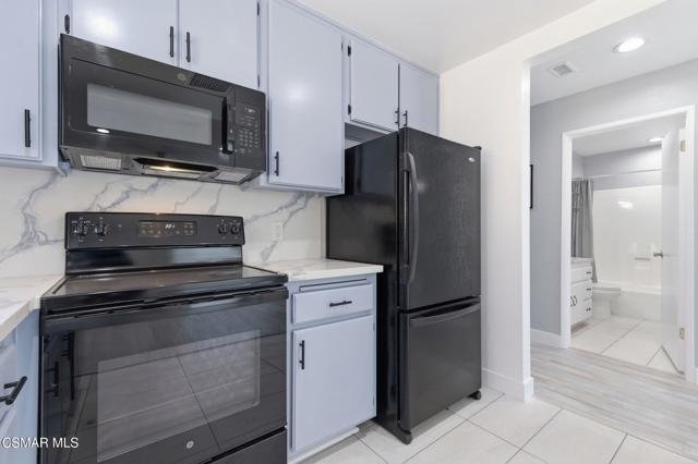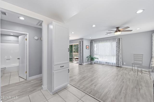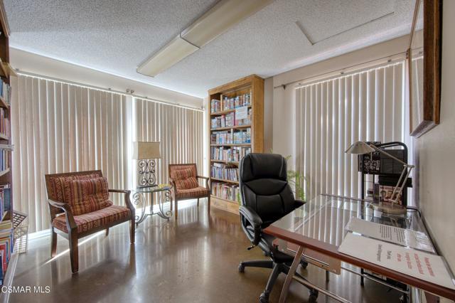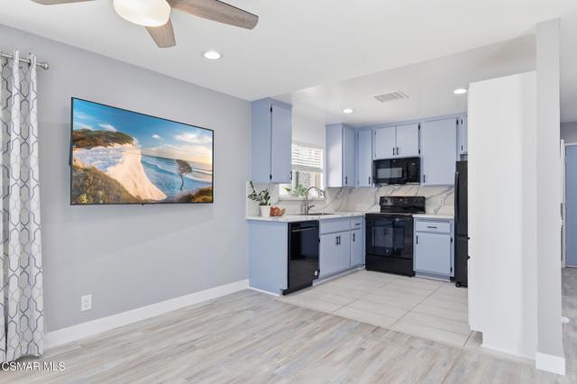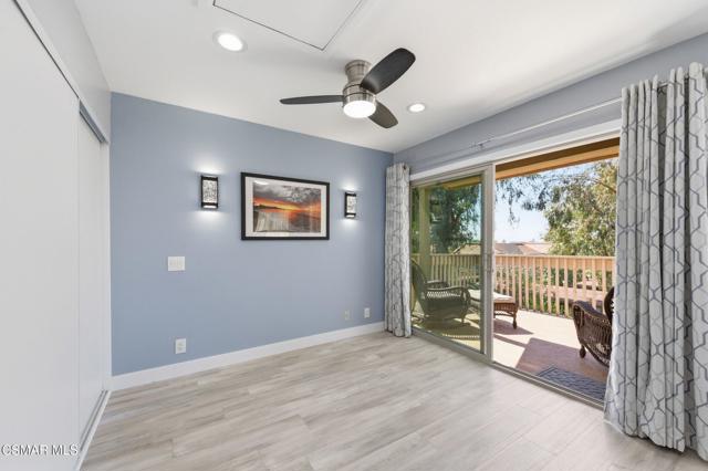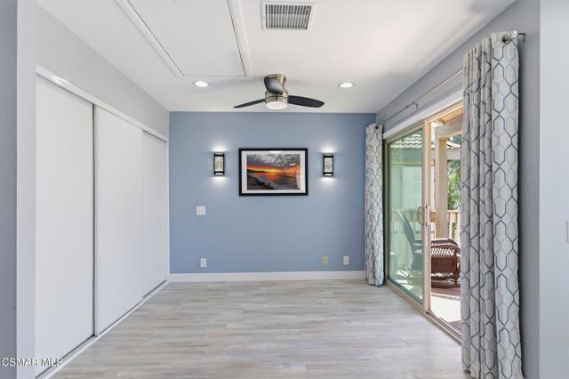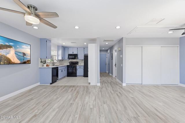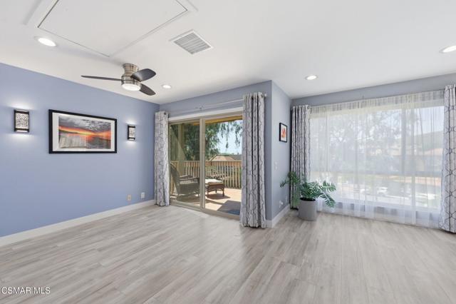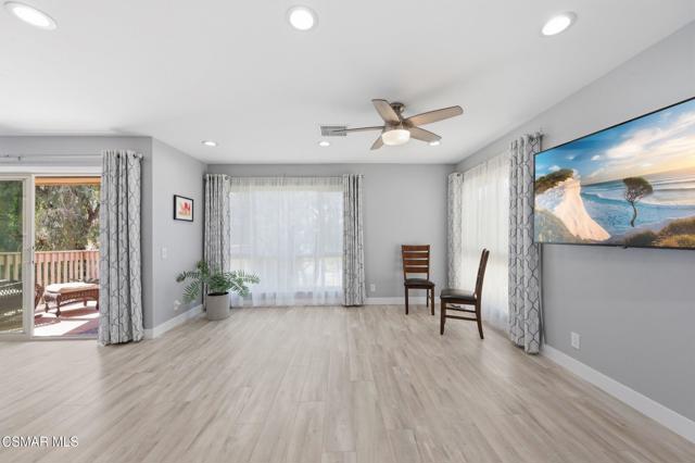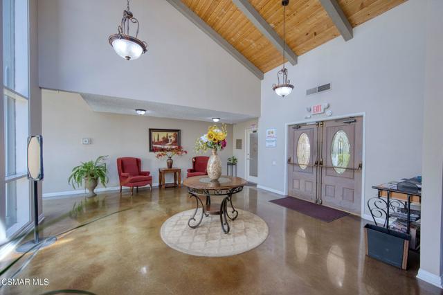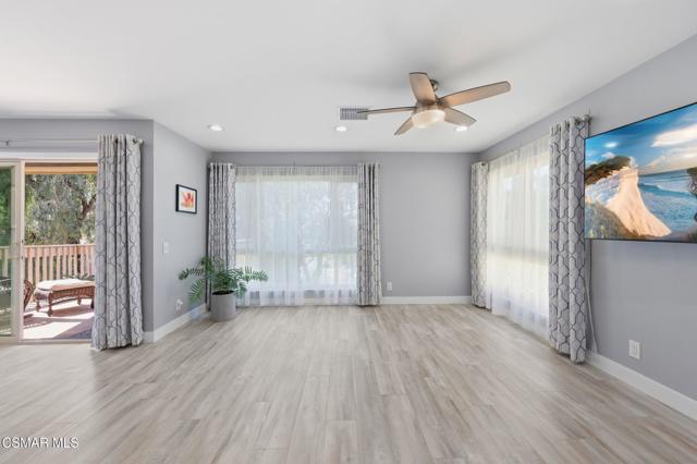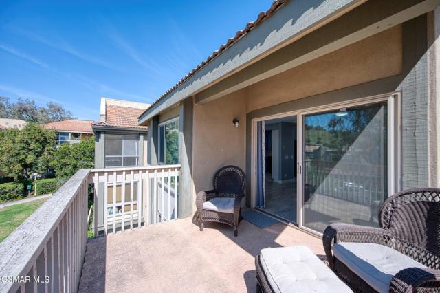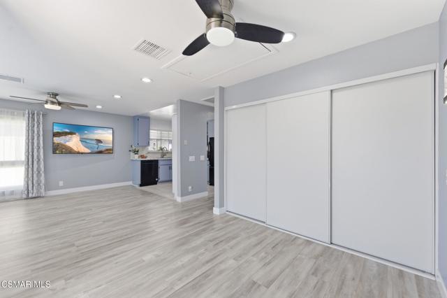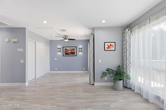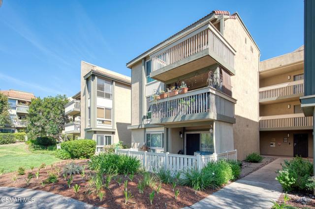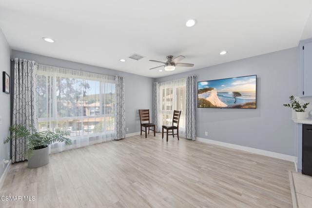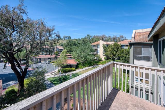 This beautiful penthouse, perched on the 3rd floor with elevator access is an updated studio offering a rare sense of privacy with no adjoining walls creating a peaceful retreat that truly feels like your own sanctuary. Bathed in natural light and surrounded by treetop views, the home features wide-plank luxury vinyl flooring and a fresh, modern palette throughout. The open-concept layout provides flexibility for comfortable living and effortless entertaining, while the private balcony invites you to relax and unwind in a tranquil, natural setting. The living area includes a flat-screen TV, and the thoughtfully updated kitchen is appointed with quartz countertops, light cabinetry, and upgraded appliances, including a refrigerator. The remodeled bathroom, newer HVAC system, ceiling fans, and updated windows and sliding doors ensure both style and comfort, making everyday living seamless. Set within a vibrant 55+ community, residents enjoy an array of resort-style amenities including a pool and spa, clubhouse, fitness center, game room, billiards, library, and business center. One covered parking space is available with storage too. Ideally located near premier shopping, dining, scenic botanical gardens, and miles of hiking trails--with convenient freeway access--this home offers the perfect blend of tranquility and an active, connected lifestyle in the heart of Thousand Oaks.