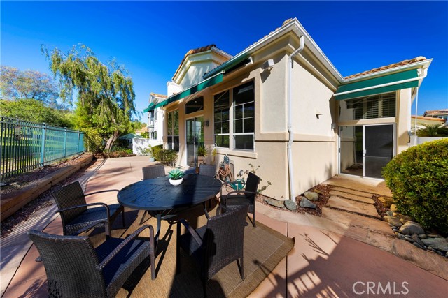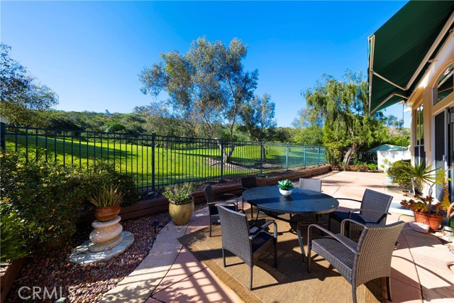 Rare and highly sought-after villa located on the 13th fairway of San Juan Hills Golf Course! Relax and enjoy peaceful moments surrounded by majestic trees, rolling green hills, and the soothing sounds of birdsong. Enter through a private gated courtyard featuring lush landscaping and an attractive flagstone surface. Inside, you’ll be impressed by the bright, open feel created by abundant windows and soaring ceilings. The open floor plan is ideal for both everyday living and intimate gatherings, seamlessly connecting the living room, dining area, and kitchen. The kitchen features abundant cabinetry, a spacious pantry, a center island for convenient meal preparation, and direct access to the backyard—perfect for enjoying the stunning views. The spacious living room offers a cozy fireplace and built-in cabinetry for optimal storage. The primary suite is generously sized and includes a luxurious bathroom with dual sinks, a soaking tub, a separate shower, and a large walk-in closet. A sliding glass door provides direct access to the lush backyard. A versatile den—complete with built-ins for closet or storage use—can easily serve as a third bedroom or home office. The secondary bedroom and bathroom are thoughtfully positioned on the opposite side of the home, offering maximum privacy. The garage provides ample storage space. This is a completely detached condo. Located in a highly coveted community, this home is just moments from all that San Juan Capistrano has to offer. Don’t miss this exceptional opportunity!