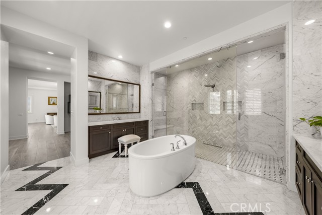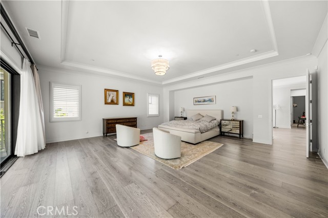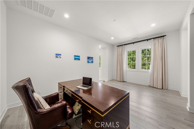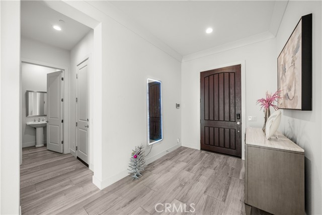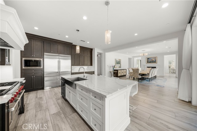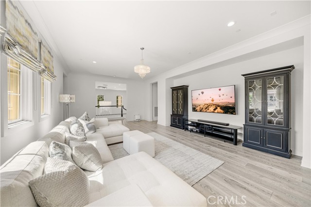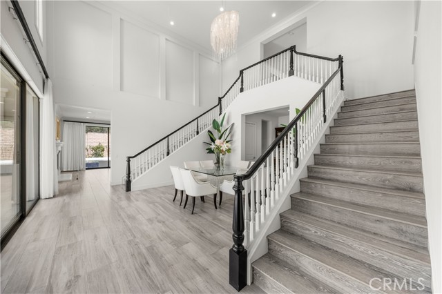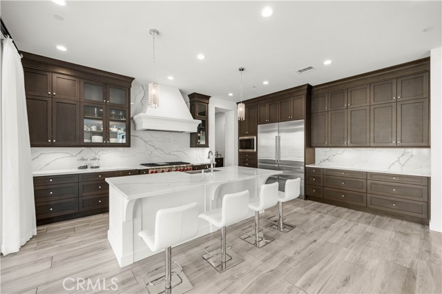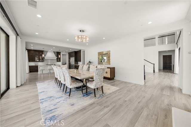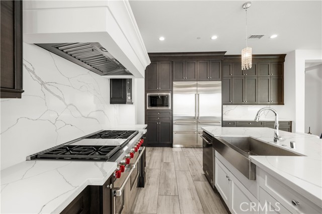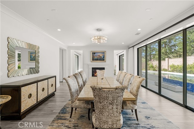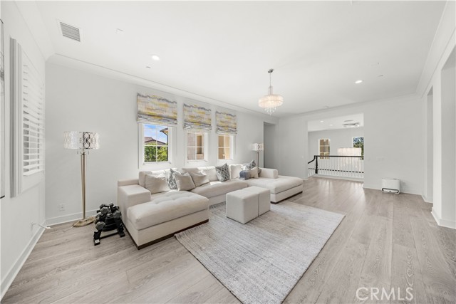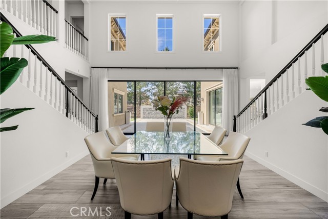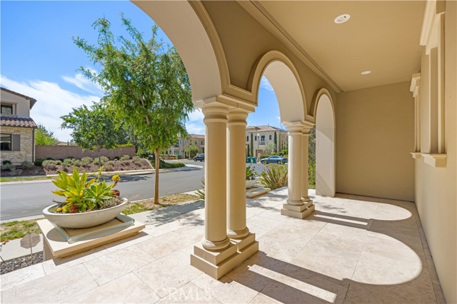 The Groves at Orchard Hills, a 13,000 sqft premium corner lot. Offering 5 bedrooms, 5.5 bathrooms, and 6,029 sqft of thoughtfully designed living space, this residence is a true showpiece. A gracious covered porch sets the tone as you enter an expansive, light-filled floor plan where oversized windows bathe every room in natural light. The grand dining room is an entertainer’s dream, framed by soaring 20-foot double-volume ceilings and an elegant dual staircase, with serene views into the private interior courtyard. Ideal for hosting dinner parties. In the living and family rooms, full-wall corner glass pocket doors dissolve the boundary between indoors and out, opening seamlessly to the beautifully appointed backyard, complete with an outdoor kitchen, BBQ, sparkling pool, fireplace, water fountain, and lounge area, perfect for year-round entertaining. The gourmet chef’s kitchen is outfitted with a generous quartz center island, full designer backsplashes, a Wolf 6-burner range, dual Sub-Zero refrigerators, and a dedicated prep kitchen. The main level also features a private en-suite bedroom and an oversized 4-car garage. Upstairs, a generous loft and media room, anchors the upper level. The primary suite is a sanctuary unto itself, boasting a private balcony, refined coffered ceilings, a tranquil sitting retreat, a spa-inspired bath, and an expansive walk-in closet fit for royalty. Three additional en-suite bedrooms and a conveniently located laundry room complete the upper floor. Additional highlights include fully paid solar panels. Residents of The Groves enjoy resort-style amenities including multiple pools, parks, hiking trails, and sports courts, all within close proximity to top ranking schools and the vibrant Orchard Hills Shopping Center. This is luxury living at its finest.