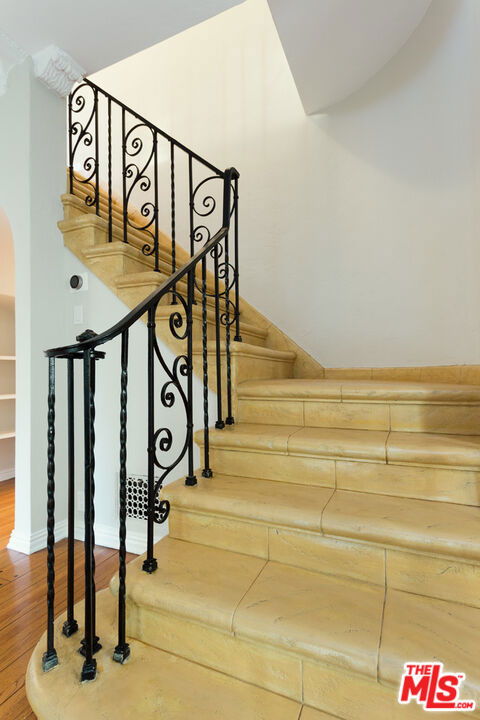 The historic courtyard apartments at El Mirador - circa 1936 - encompass six spacious, two bedroom two-story townhomes that sit on an exceptionally large 1/3 acre of lushly and thoughtfully landscaped land in the heart of Los Feliz Village. This completely renovated residence marries old world artistry and craftsmanship with state-of-the-art technology and design and includes stained-glass windows, old-growth hardwood floors, original travertine-style magnesite stairwell, magnificent tile work, all appliances including dishwasher and washer/dryer, central heat and air, Ring alarm system, high ceilings, formal dining room and garden-view balconies. Each apartment has its own street address and personal garage. El Mirador represents perhaps the most unique, charming and emotional courtyard residence experience in all of Southern California. El Mirador Apartments - Where "Old World" Meets "Today".